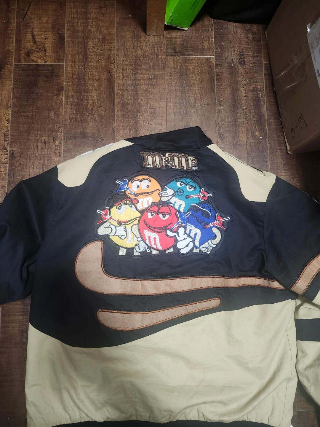 Selling a fun M&M's racing jacket in size XL(but seems to be smaller) It's a real statement piece with the colourful M&M's designs and racing-inspired details. The jacket is in great condition and ready for a new home