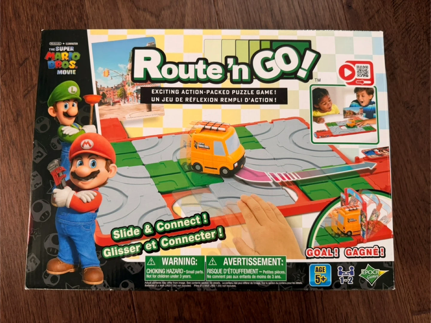 Like New Epoch Super Mario Route 'n Go Puzzle Game Selling the Epoch Super Mario Route 'n Go game. It comes with all the pieces and the original box. It's a fun tabletop skill and action game featuring collectible Super Mario action figures. Retails for over $30. Clean, smoke free home Pick up in North Ajax
