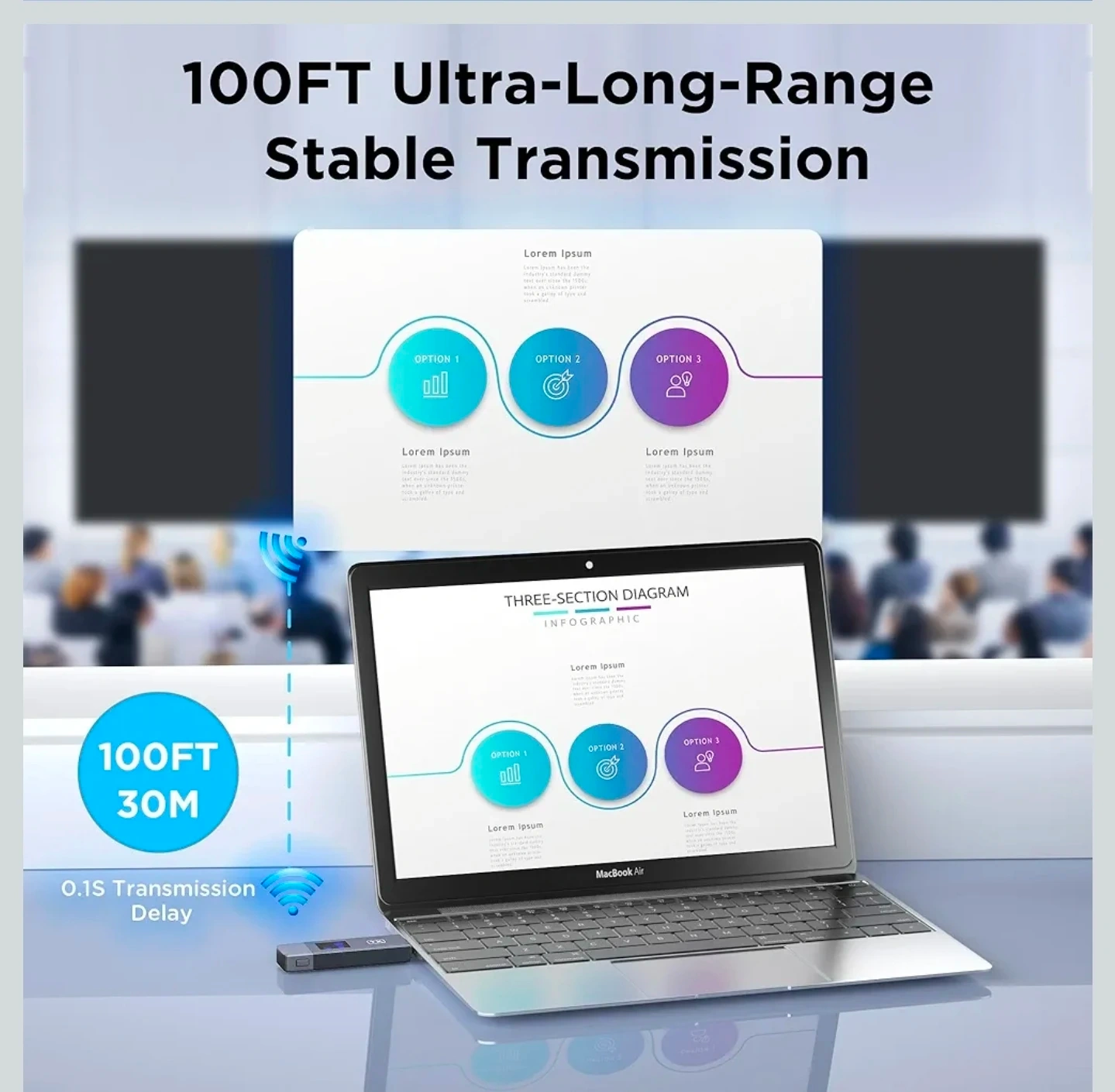 Wireless HDMI Transmitter and Receiver, 4K Decode 1080P@60Hz Ultra HD Video Output, LED Display, Plug&Play 5G+2.4G for Video and Audio to Monitor from PC/Projector/TV Box