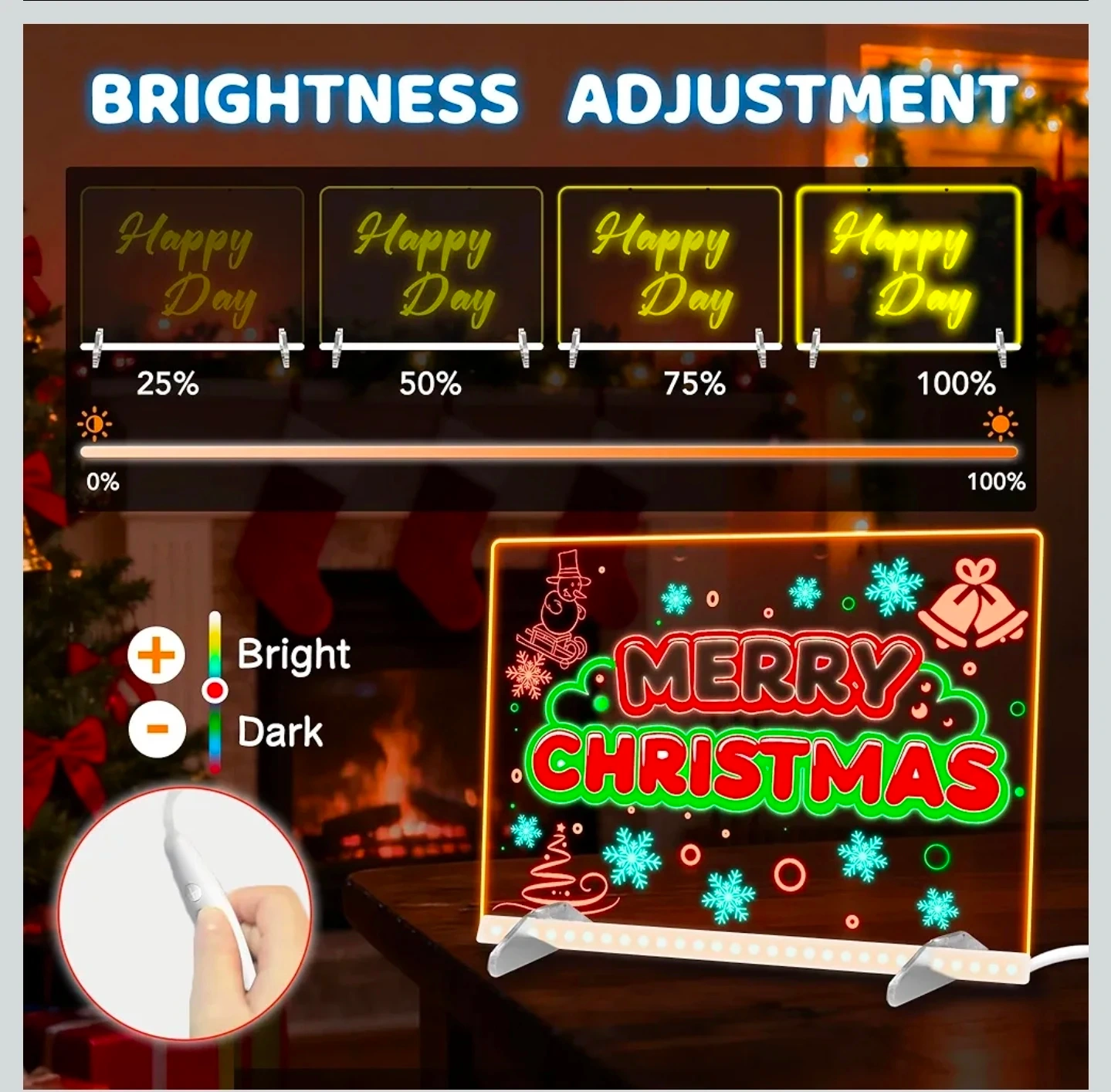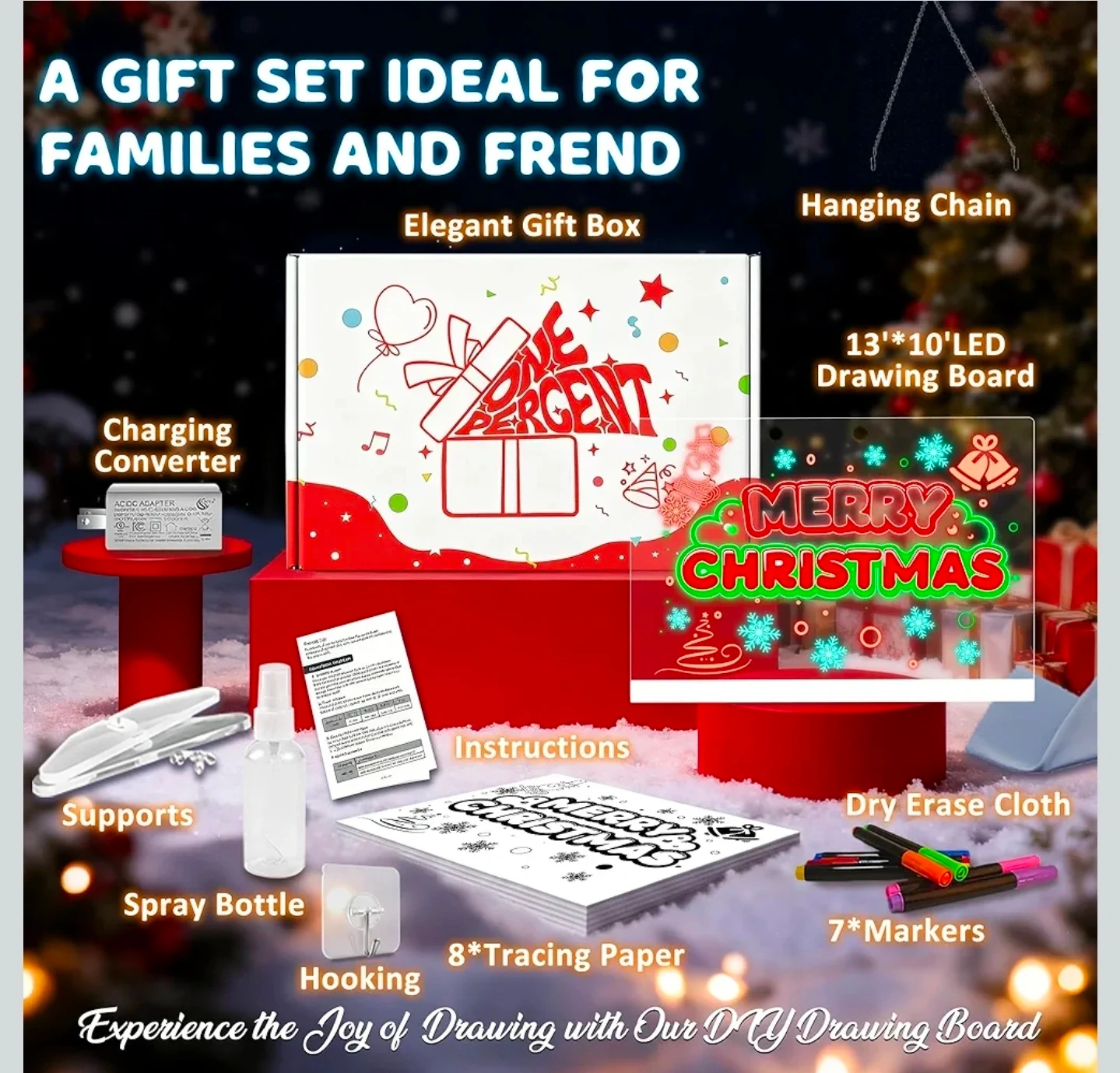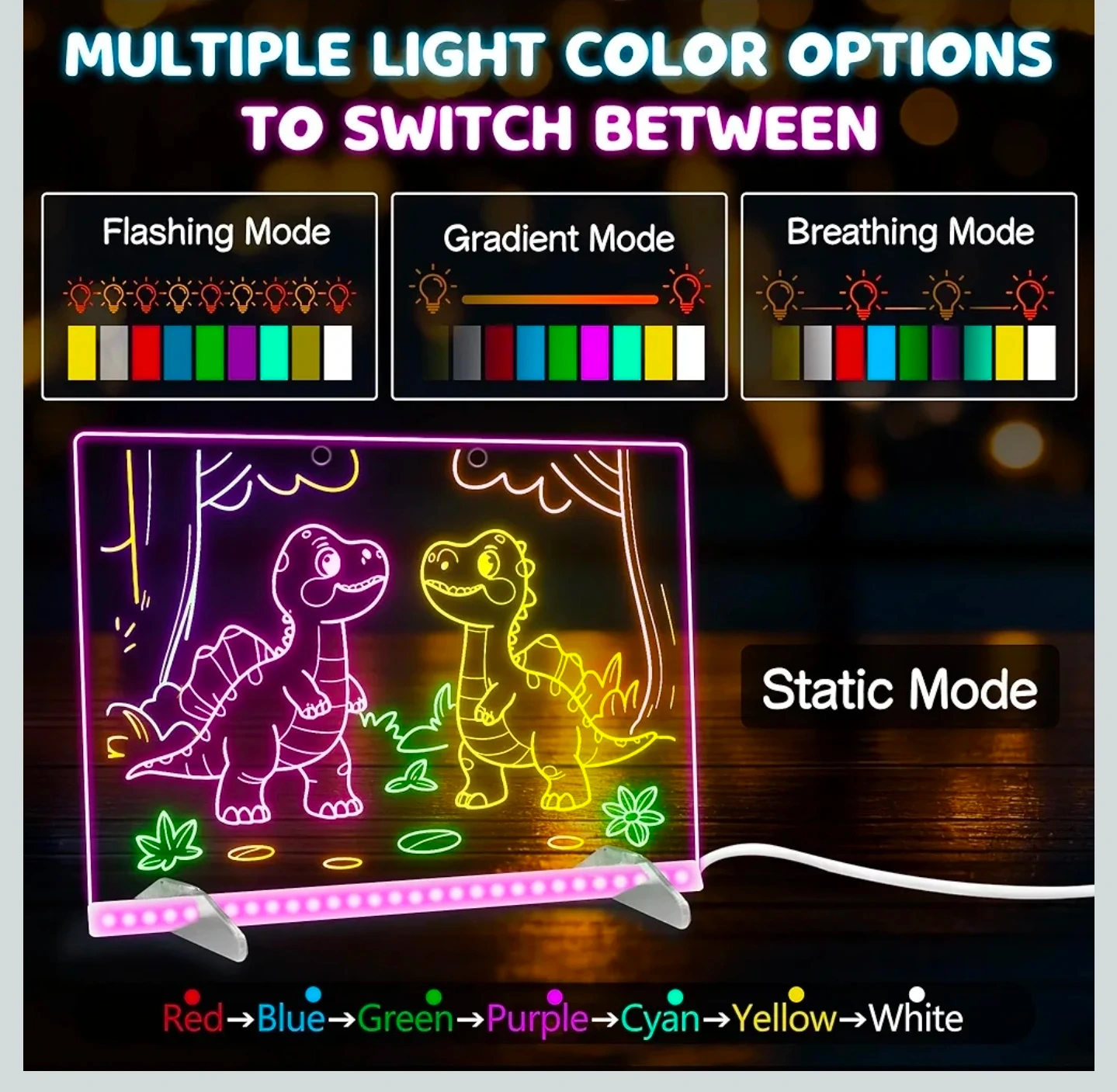 LED Drawing Board -13.7'' X 10" Doodle Glow Board for Christmas Gift, Room/Store/Festival,etc. with 4 Modes & 7 Colors, LED Glow Drawing Board with Adapter, 7 Markers & Tracing Paper