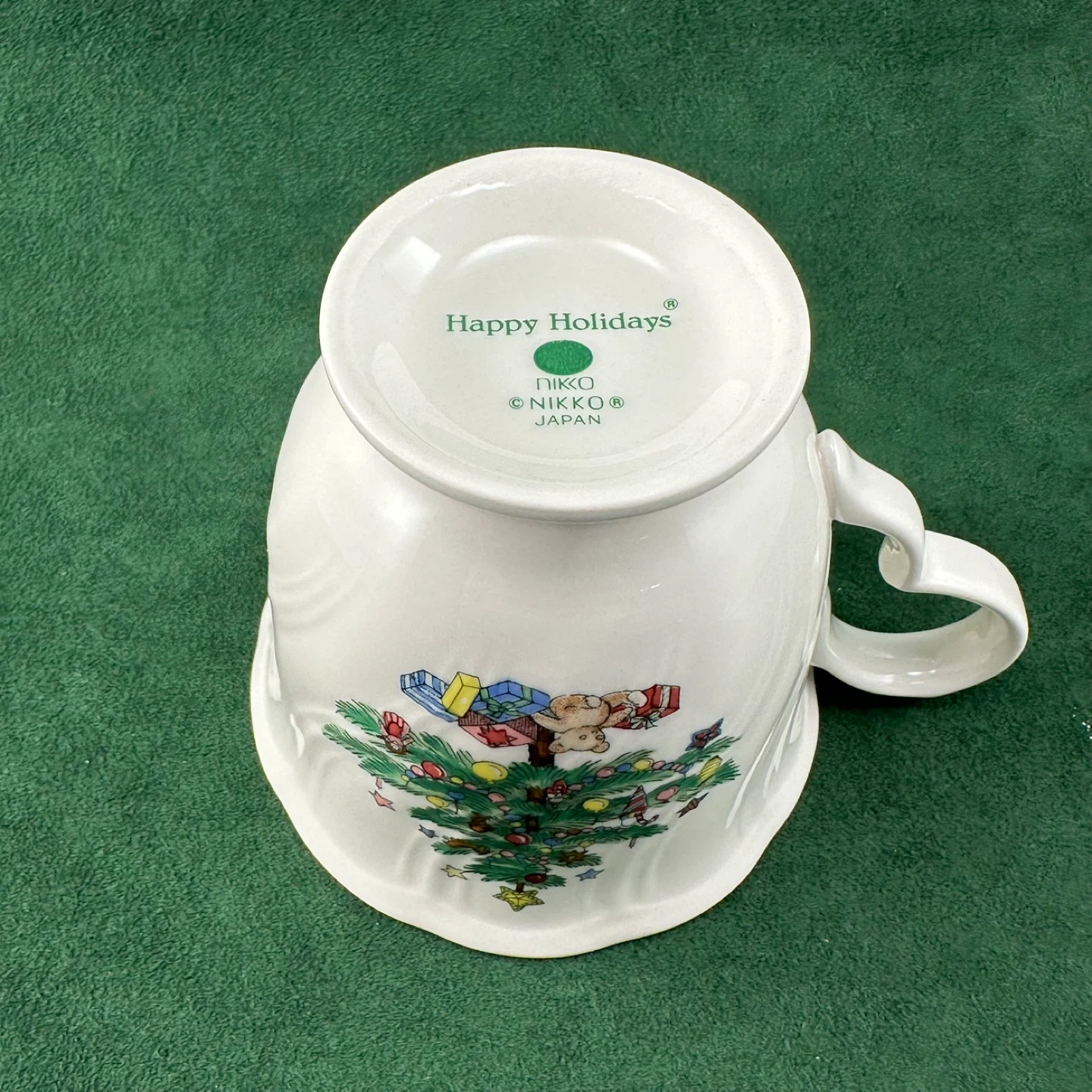 Vintage Nikko (made in Japan) Christmas Happy Holidays pattern teacup/mug. No chips, cracks or crazing — pings/rings