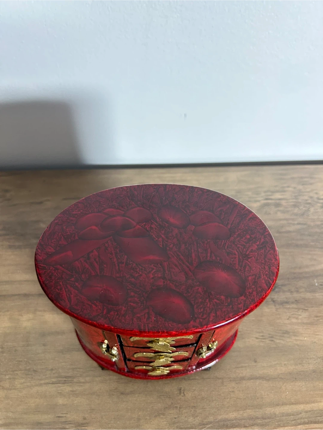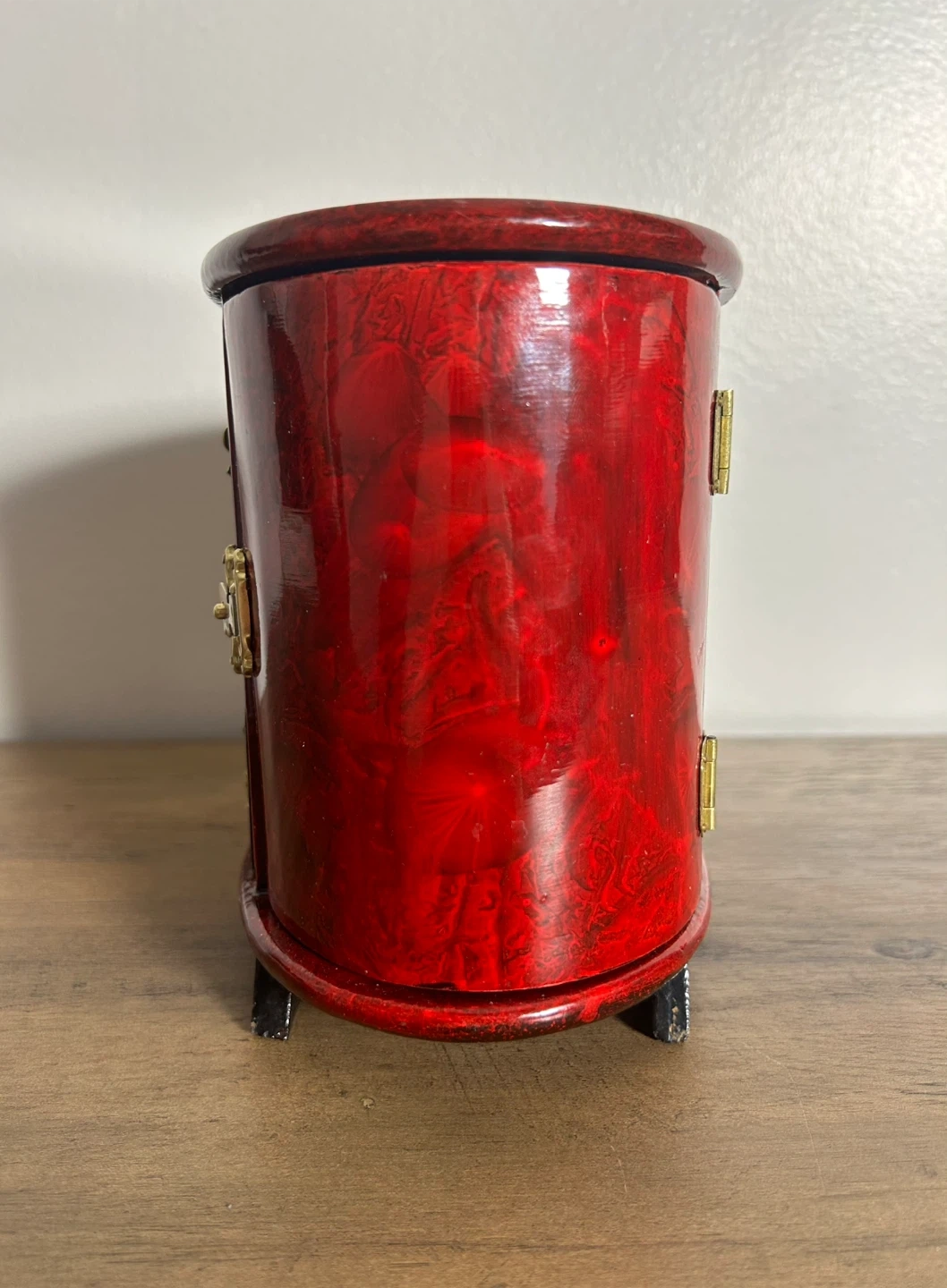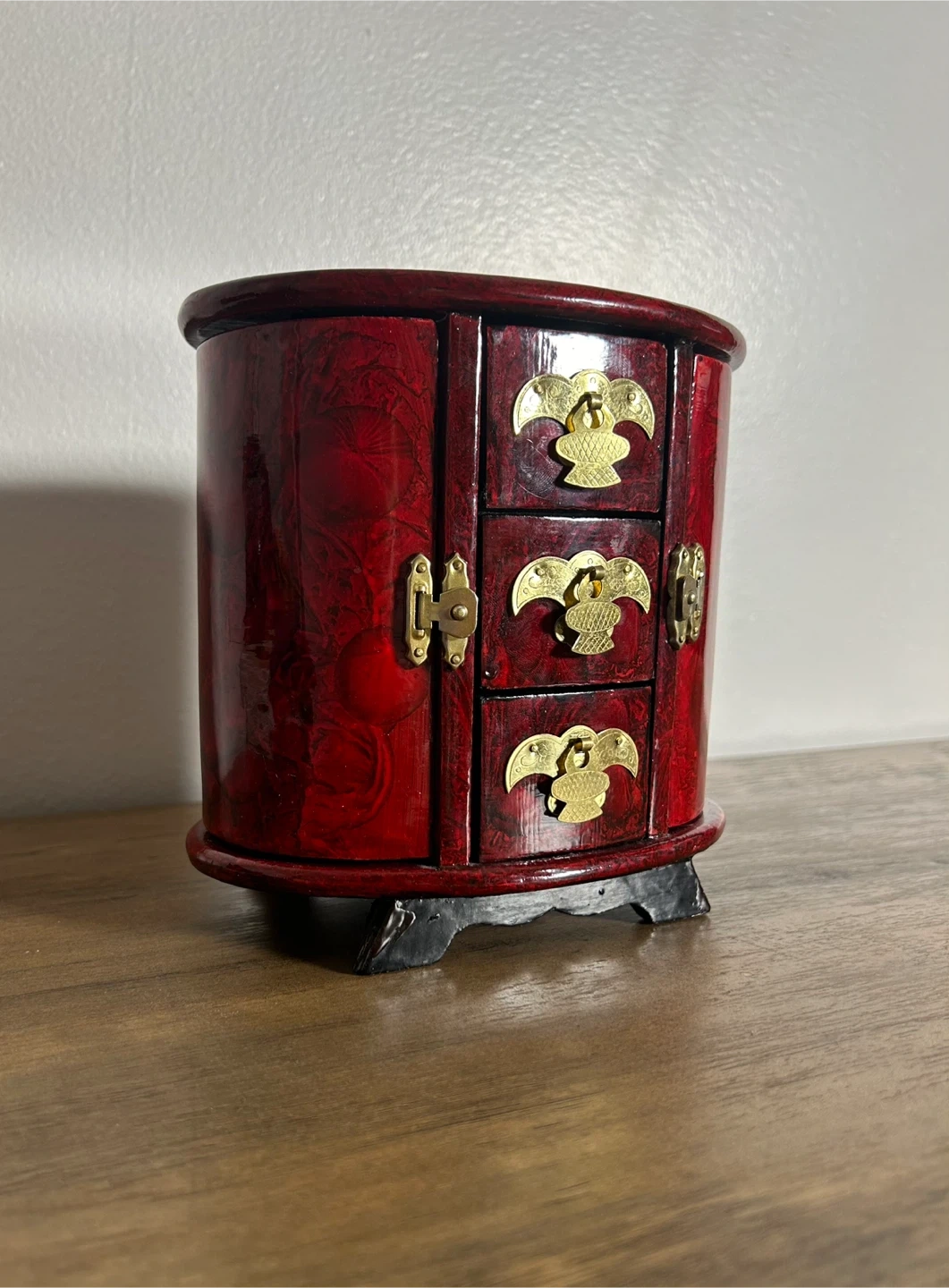 A stunning lacquered rosewood mini cabinet, perfect for jewelry, trinkets, or as a decorative piece.