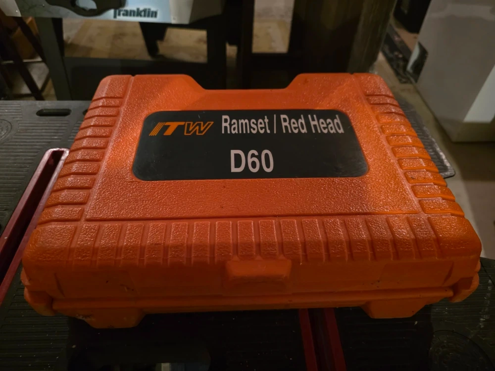 Selling a Ramset D60 powder actuated tool. It comes with its original orange carrying case, a cleaning brush, and lubricant. Great for construction or DIY projects!