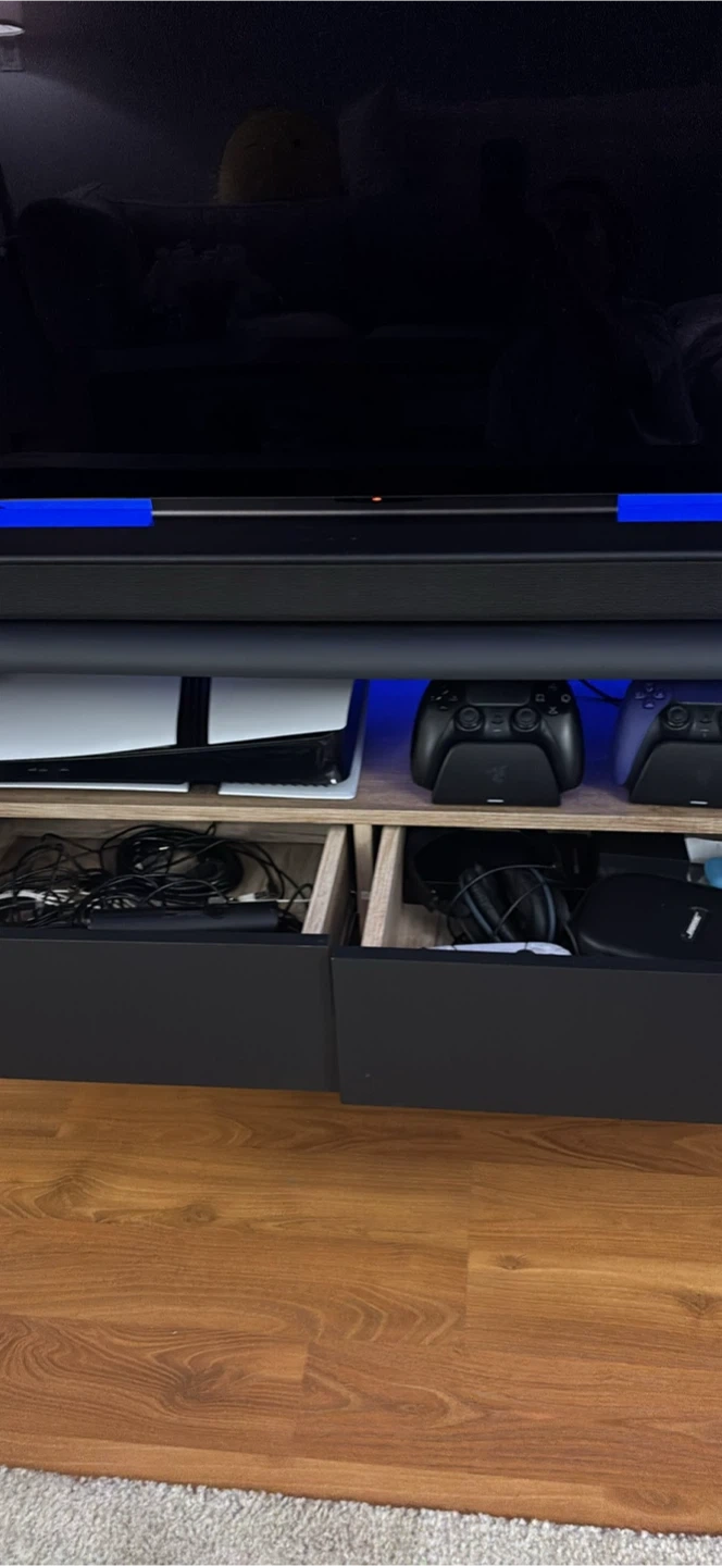 Selling a black TV stand from structube, original price close to $400. Has storage drawers and side storage. It's in good condition.