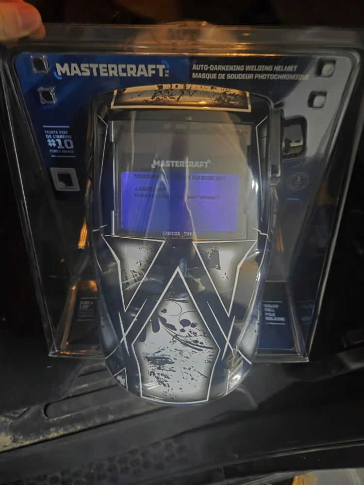 Selling a Mastercraft auto-darkening welding helmet. It has a fixed shade of #10. The visual field is 3.82 x 1.85 inches (97 x 47 mm). It also has a ratchet headband with removable sweatband for easy adjustments. The helmet has a high-impact resistant nylon shell. Retails for 90$ plus tax. See link below. https://www.canadiantire.ca/en/pdp/mastercraft-auto-darkening-welding-helmet-fixed-shade-10-white-skull-0589309p.html?utm_content=shopping&gclsrc=aw.ds&gad_source=1&gad_campaignid=20278780488&gclid=Cj0KCQiAoZDJBhC0ARIsAERP-F-P4T8J-CpvOsNoXS01o34MPHIJcgdbeGobezTHtfd1pZuV4lixdlgaAjv_EALw_wcB#store=70