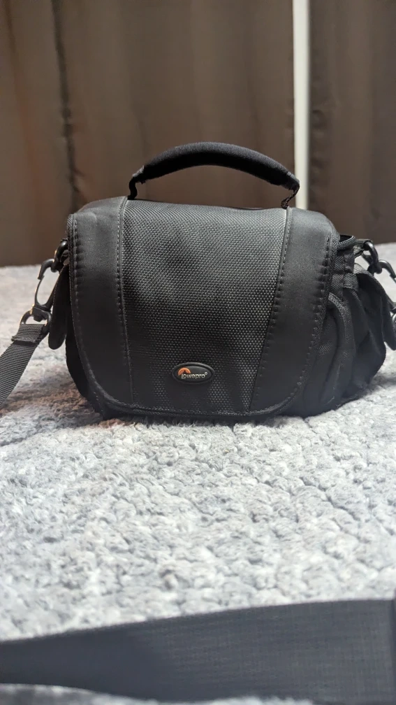 Comes with a carrier/camera bag, battery charger and a 12 pin USB cord.