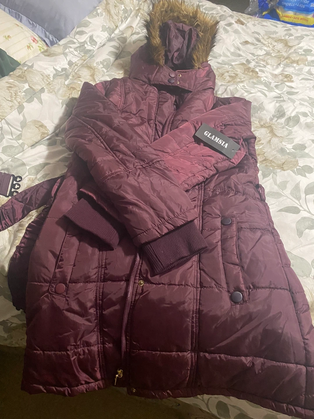 Selling a Glamsia puffer coat in a lovely burgundy colour. It has a faux fur hood and a belted waist. Perfect for staying warm this winter! It’s BRAND NEW, never been used.