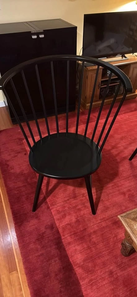 Was over $395 new. Mint condition. Like New. “Paula navone” brand by Crate and Barrel top span 32 inches by 41 tall. Finish is black. Only sold as a pair. (Furry friend not included). $165 for both! We are moving. Very cool chairs.