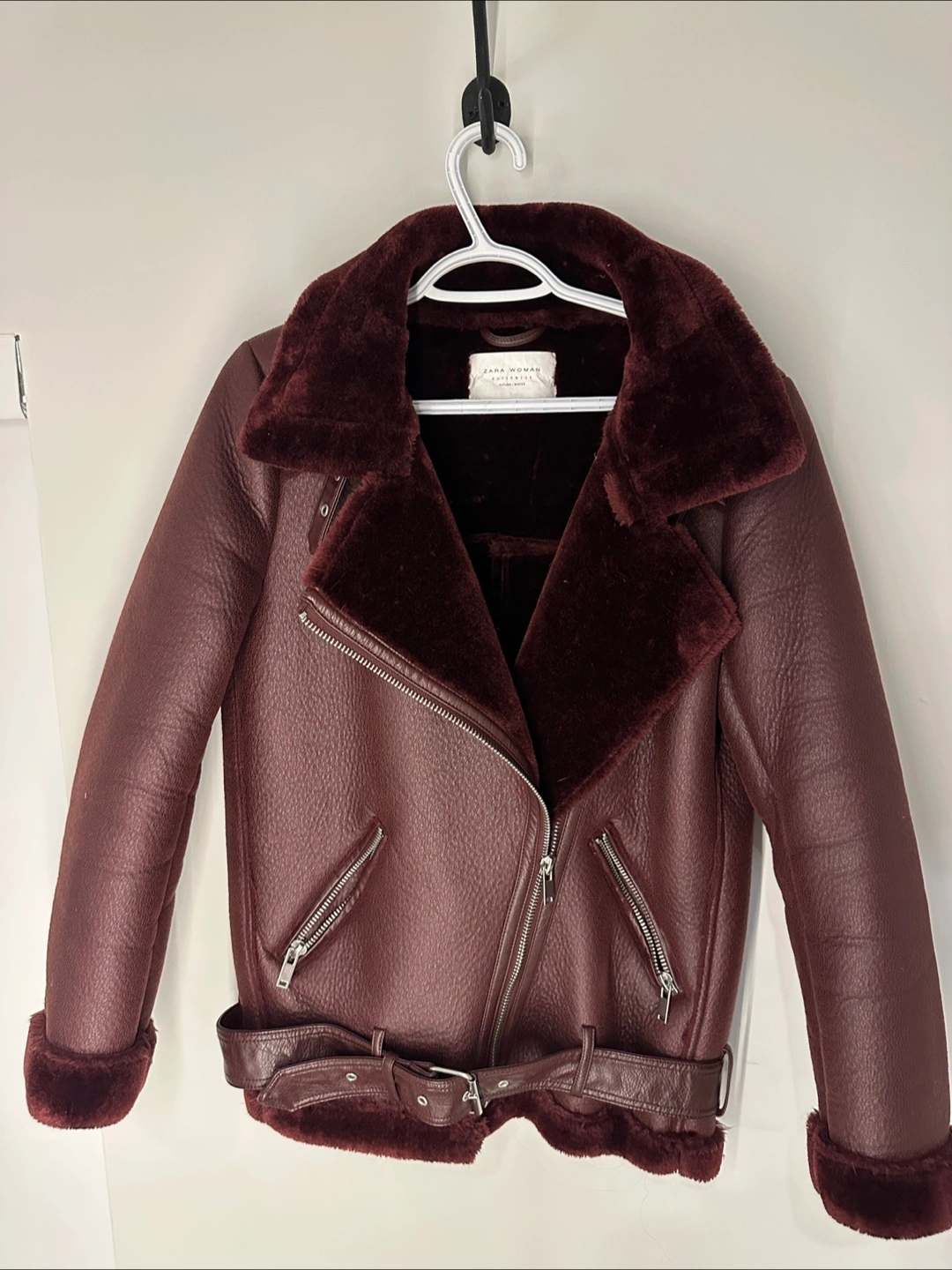 Buy & SellZara Woman Faux Shearling Biker JacketZara Woman Faux Shearling Biker Jacket$30Zara Aviator style jacket. Faux leather and fur lined. Perfect for an evening out. XS but fits like a S.ConditionGoodSizeXsBrandZaraWHERE TO MEETCheck LocationView MapSELLERverifiedKalikaWallace Emerson923 reviews0 chats·2 favorites·28 views
