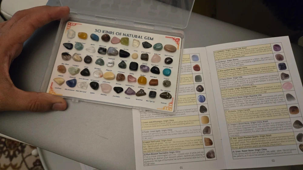 Selling a collection of 50 different kinds of natural gems! It comes in a clear plastic case for easy storage and display. Each gem is unique and beautiful, perfect for collectors or anyone interested in geology