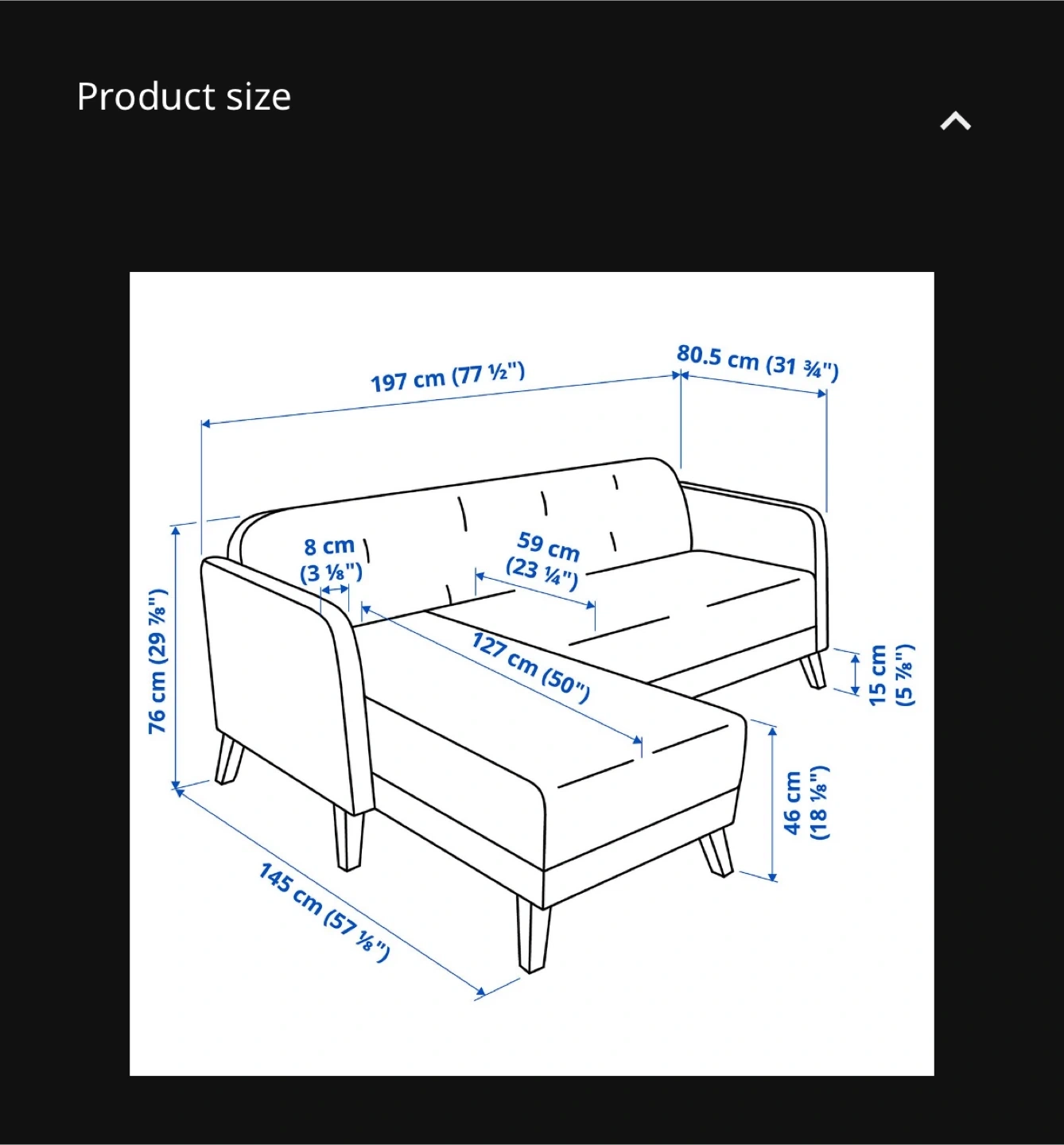 - Depth of chaise: 57 1/8 inches (145 cm)