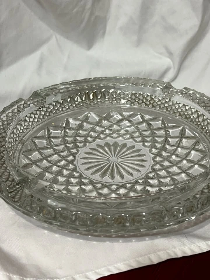 Large, heavy, clear glass ashtray, an original Anchor Hocking design made in the USA. In good vintage condition with light wear consistent with age, no chips or cracks. Please see photos for details. Selling for my grandmother to help with some extra income. Local pickup available in Fairview!