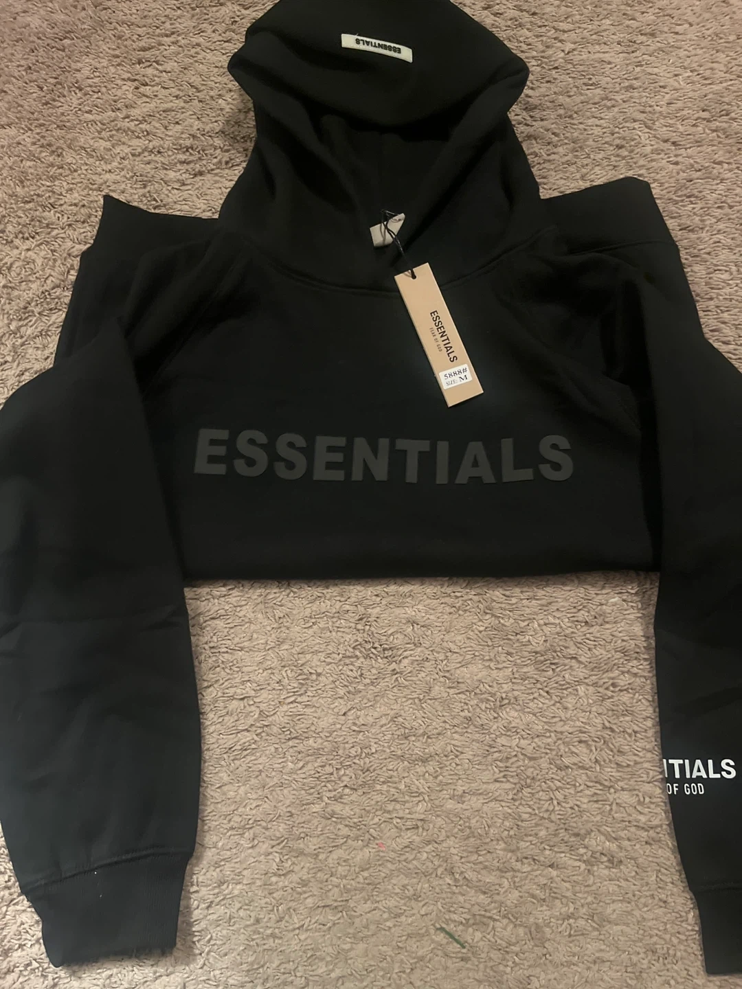 Selling a brand new Essentials Fear of God hoodie in black! It's in perfect condition and comes in its original packaging. This cozy hoodie is perfect for everyday wear and will keep you warm and stylish.