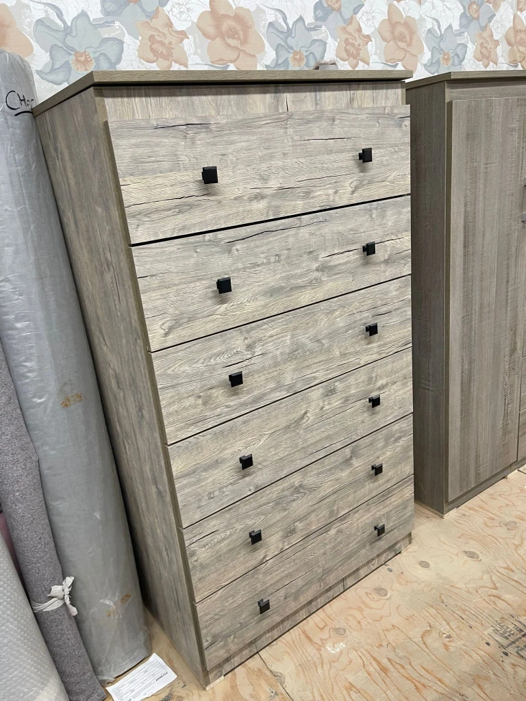 Here's a lovely 6-drawer chest dresser! It's a great piece for adding storage to any bedroom or living space. The drawers slide smoothly, making it easy to access your clothes or other items