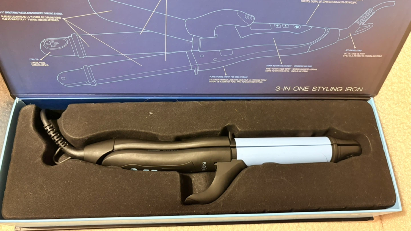Selling a brand Bio Ionic Nano Ionic MX 3-in-1 styling iron! This unique tool combines a flat iron, curling iron, and wand into one, making it super versatile for all your hair styling needs.
