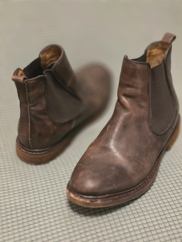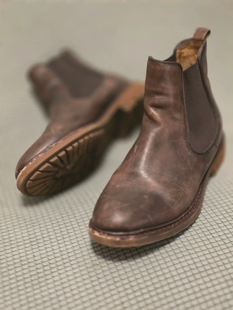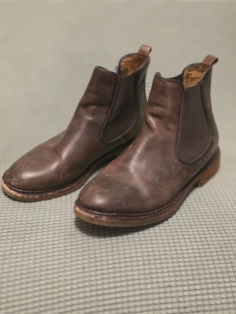 Selling a pair of Sofft Chelsea boots in brown leather. They show some signs of wear, as you can see in the photos, but they're still in good condition. Perfect for everyday wear!
