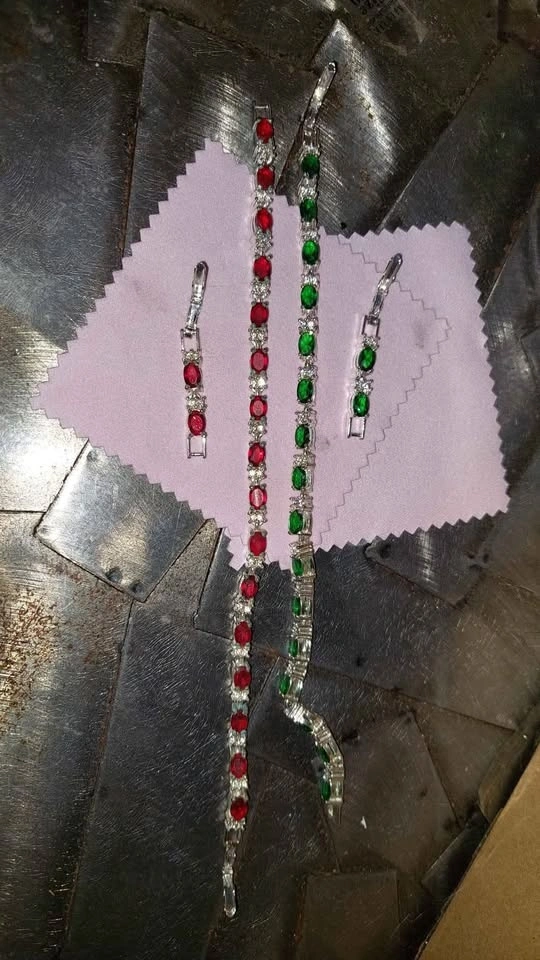 2 Gorgeous bracelets one green and one red with gems and extenders $10 each