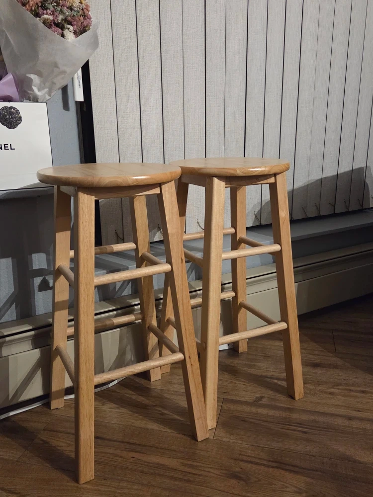 Selling a pair of wooden bar/island stools. They are in good condition and would be perfect for a kitchen island or bar area. They are a natural wood colour.
