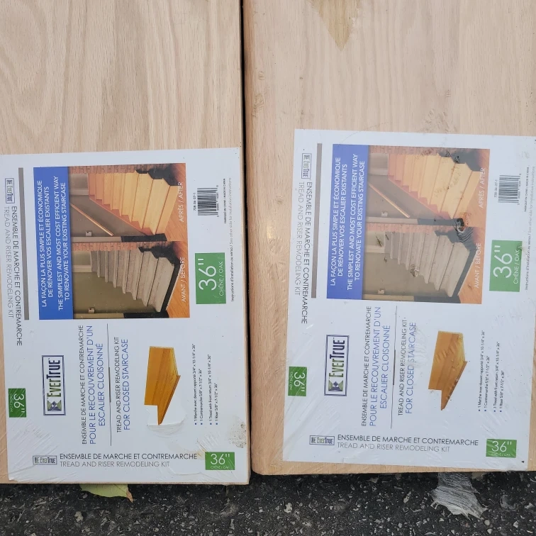 EverTrue 36" Tread and Riser Remodeling Kits for closed staircases. They are oak and designed to make remodeling your existing staircase simple and economical. Perfect for a quick home upgrade! -$30 each. BRAND NEW
