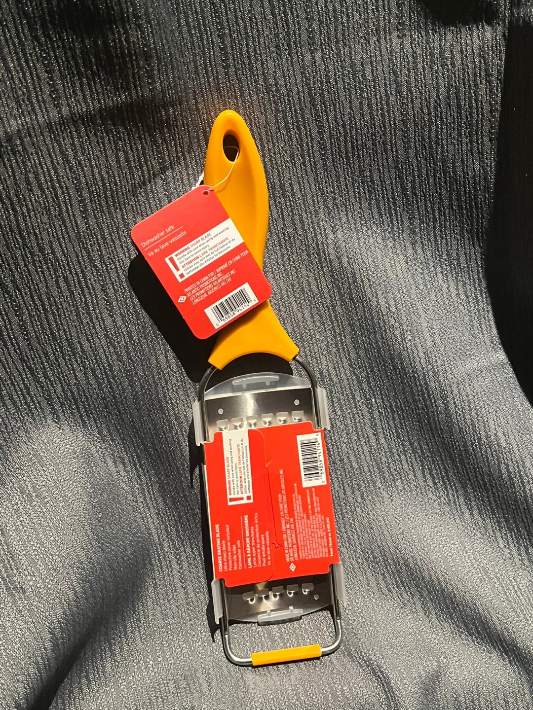 I'm selling a brand new Starfrit Razor Hand Grater! It features an ultra sharp coarse blade, perfect for cheese, carrots, chocolate and more