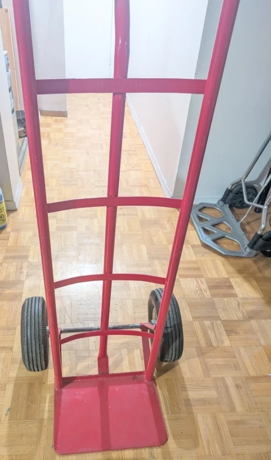 Selling a red hand truck dolly. It's in good working condition and ready to help you move heavy items with ease.