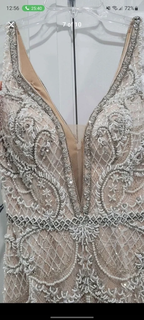 Selling a beautiful wedding dress, perfect for your special day! The dress features intricate beadwork and a flattering silhouette. It's in great condition and ready to make someone's wedding day magical