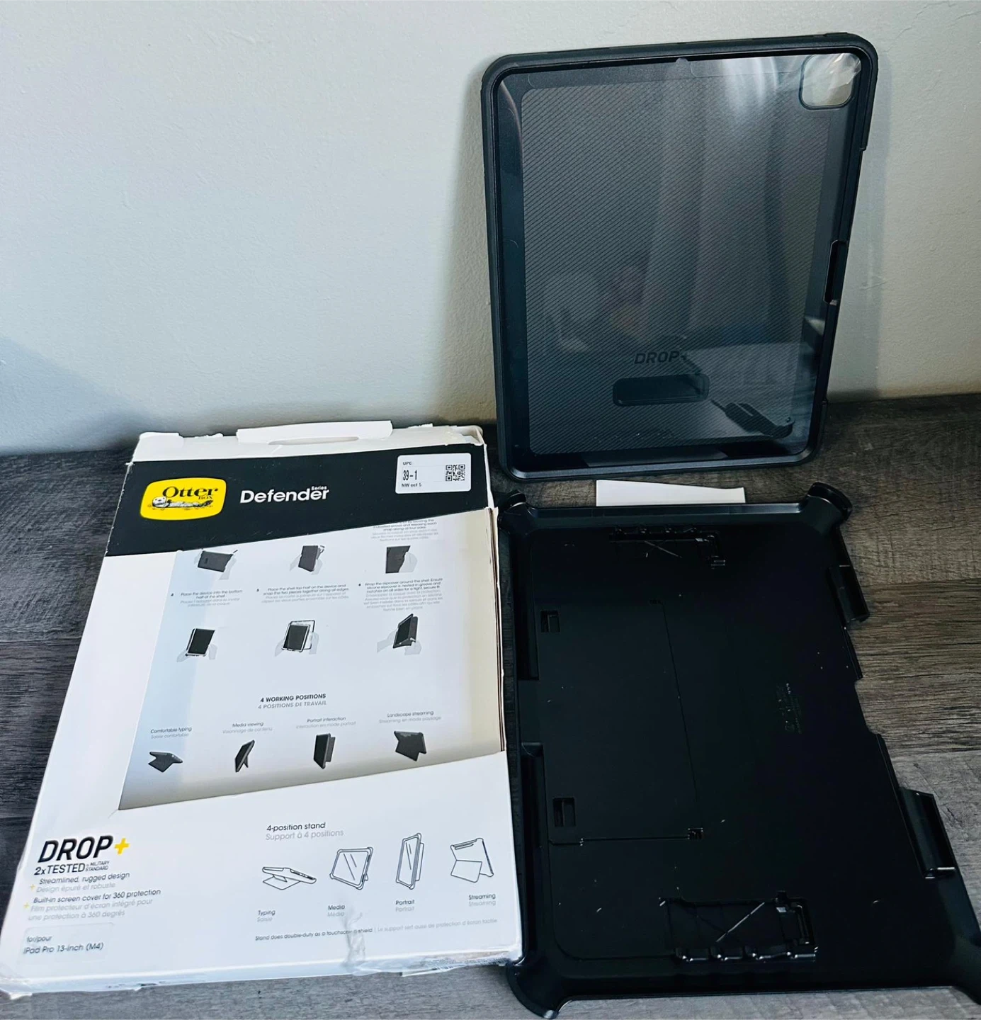 Selling an OtterBox Defender Series rugged case for the iPad Pro 13-inch (M4) in black! It comes with a built-in screen cover for 360-degree protection and a 4-position stand. Streamlined and rugged design. The box is included!