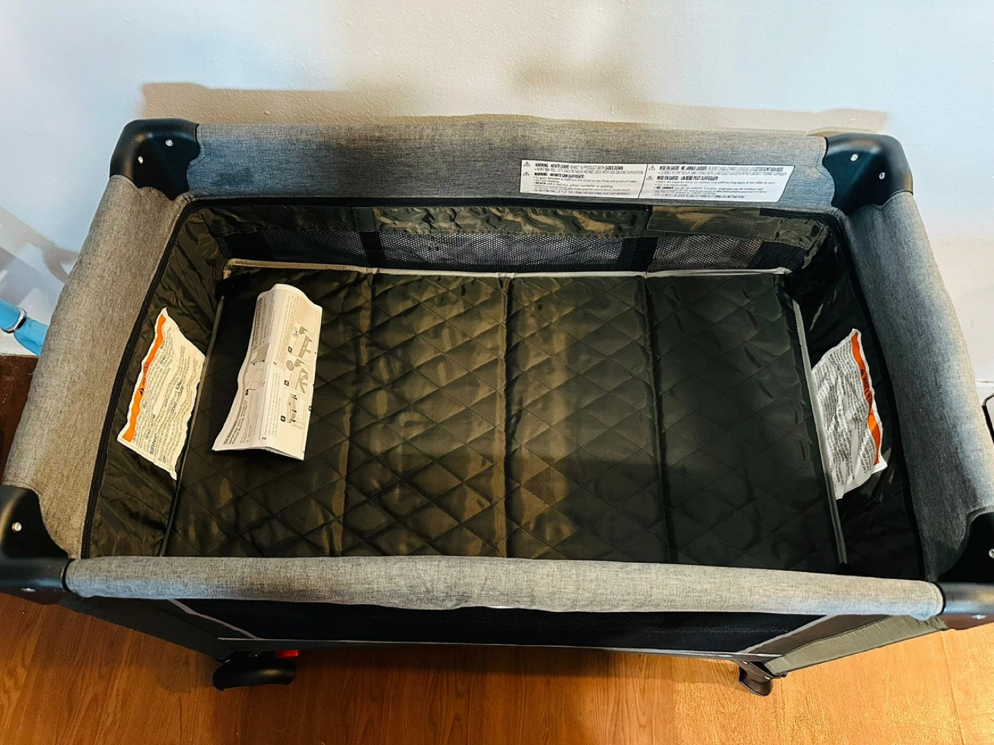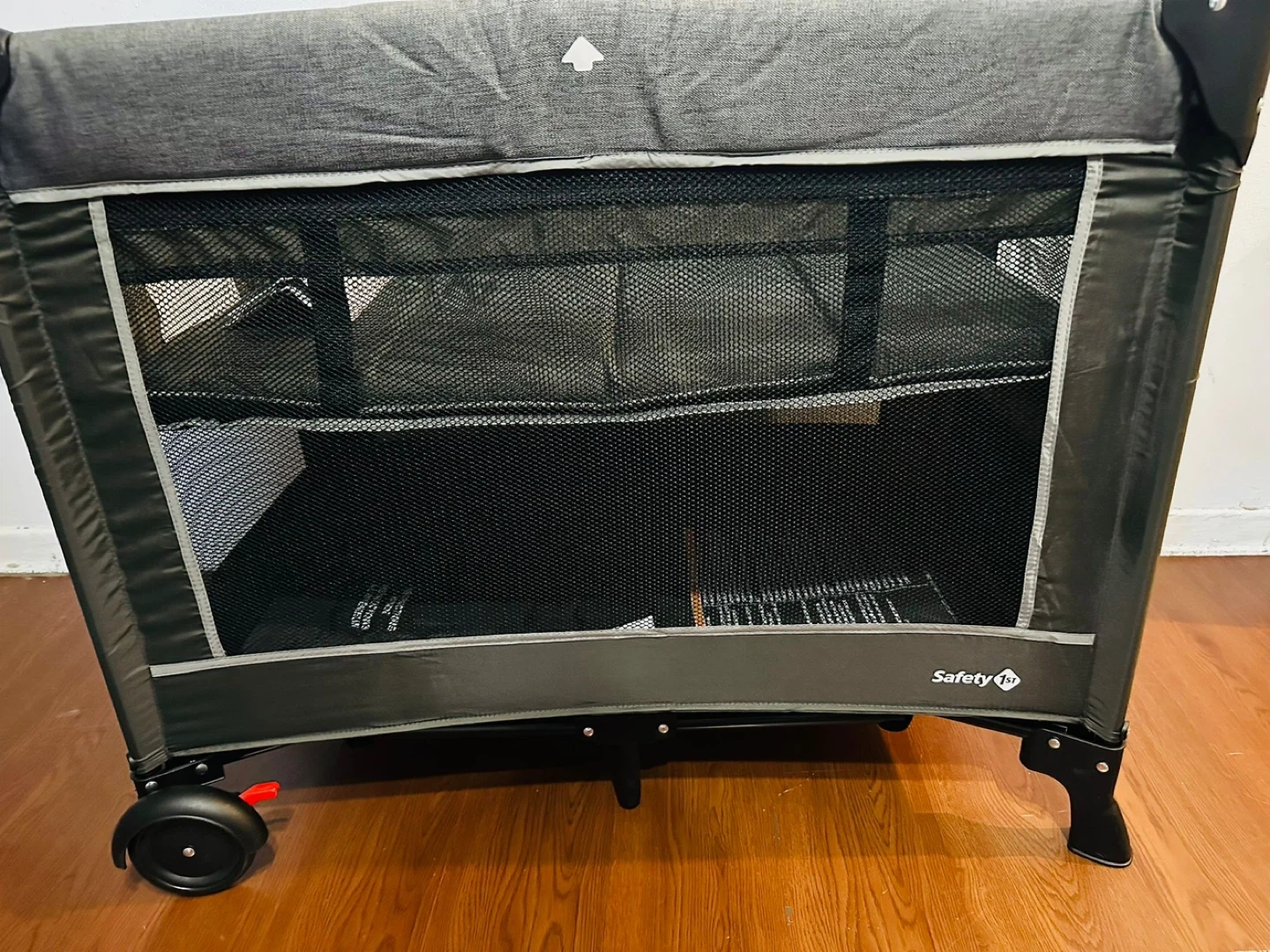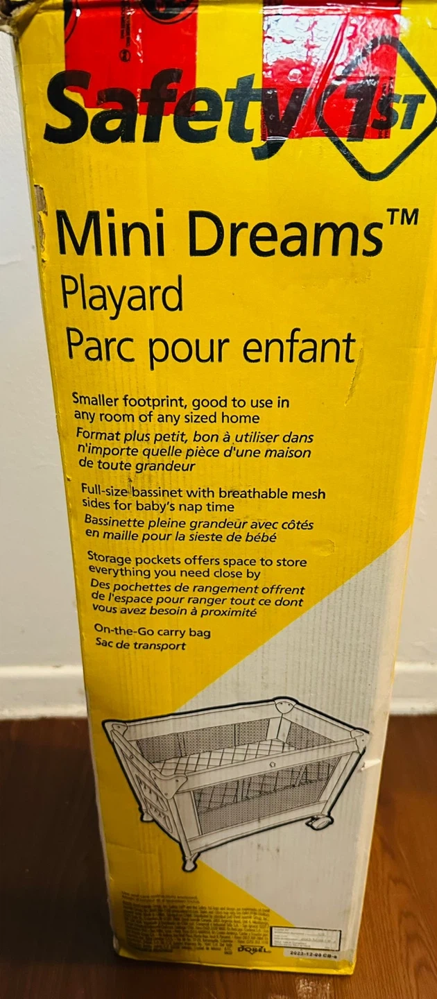 Selling a Safety 1st Mini Dreams playard in great condition! It's perfect for smaller spaces. The playard has a smaller footprint than your average playard. It also comes with a full-size bassinet with breathable mesh sides for baby's nap time and storage pockets for everything you need close by. The box is included!