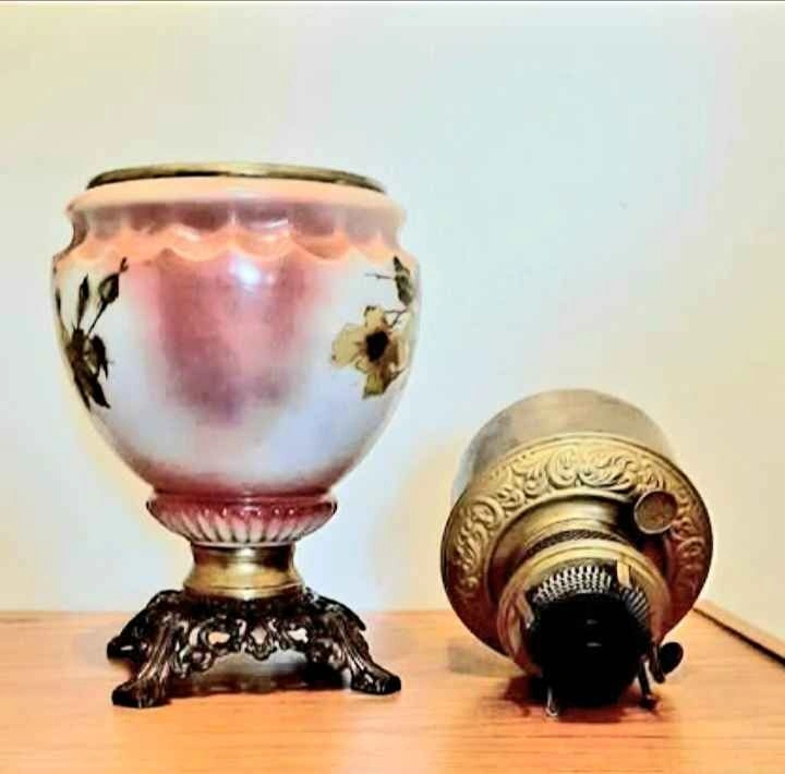 Antique Victorian 1870's , Bradley and Hubbard Hand Painted Brass Oil Lamp,