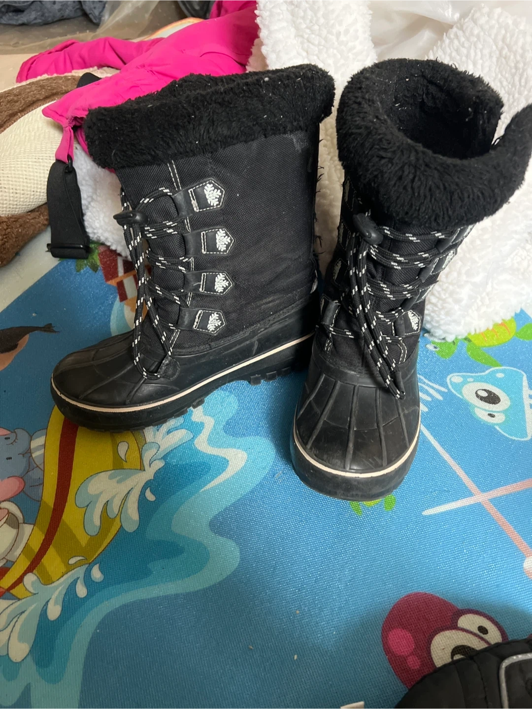 Selling a pair of black winter boots in size 1. They've been used, but still have lots of life left in them! Perfect for keeping your feet warm and dry during the winter months