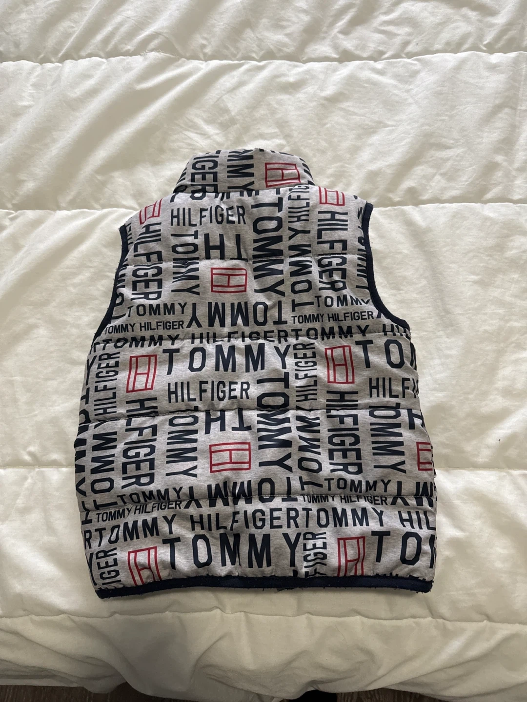 Tommy Hilfiger kids vest in size 3T! It's in great condition and features an all-over print of the Tommy Hilfiger logo. Perfect for layering on chilly days
