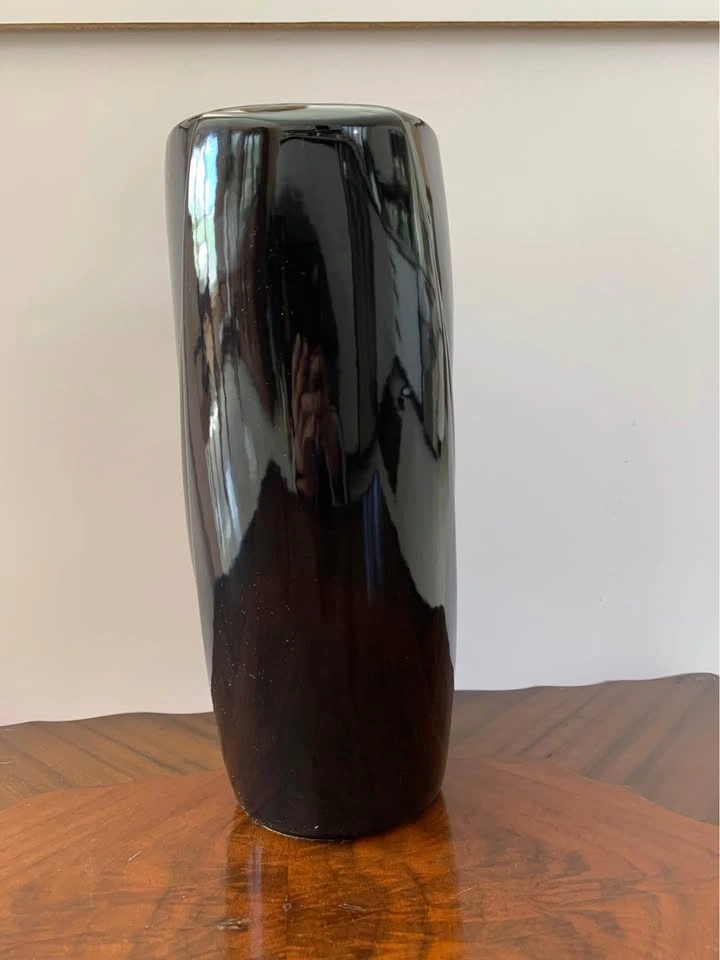Vintage retro 80’s vase. All black. Triangular geometric shape. Heavy duty. Classy or porcelain. 11 inches high, 10 inches wide.