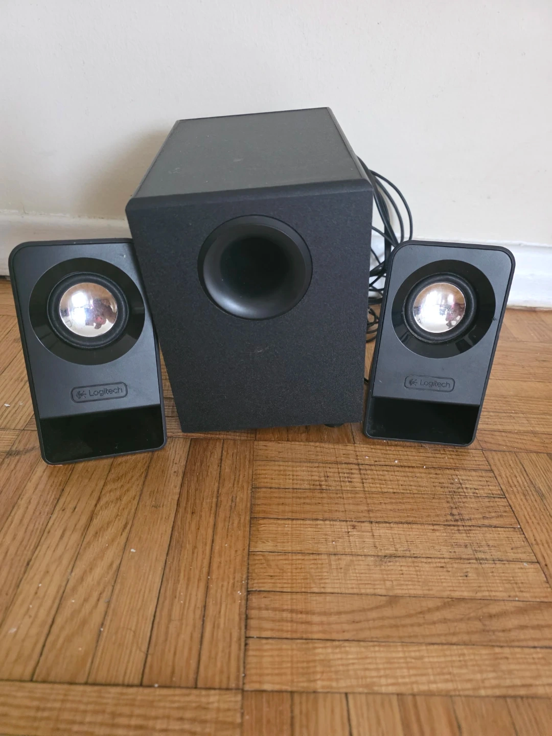 Selling a Logitech 2.1 speaker system with a subwoofer! Perfect for enhancing your audio experience while listening to music or watching movies. The set includes two speakers and a subwoofer, all in black. They're in great shape and ready to plug and play!