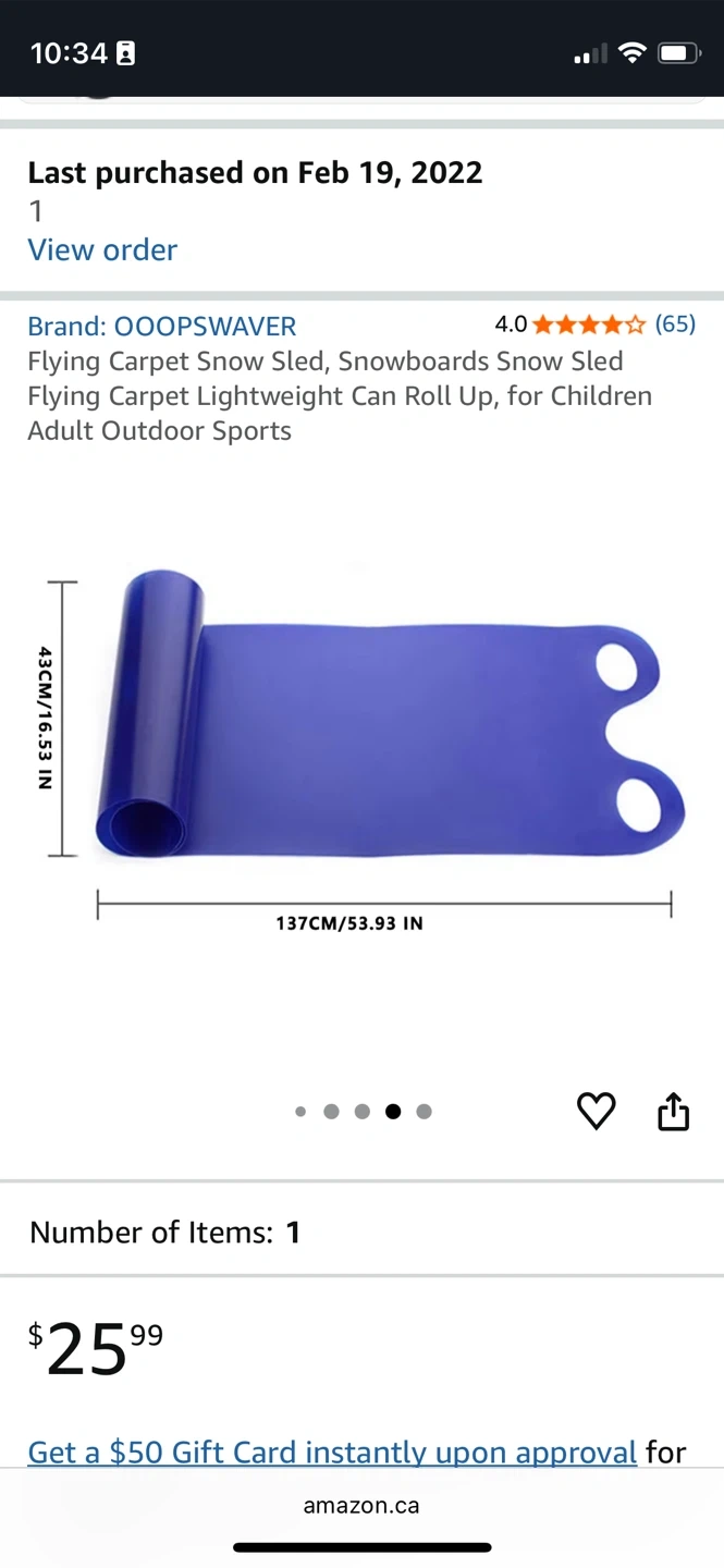 Get ready for some winter fun with this OOOPSWAVER flying carpet snow sled! It's a lightweight and durable sled that can be easily rolled up for carrying and transport. It's made of polyethylene and has two stamping handles for easy use. Dimensions are 43cm x 137cm Never used