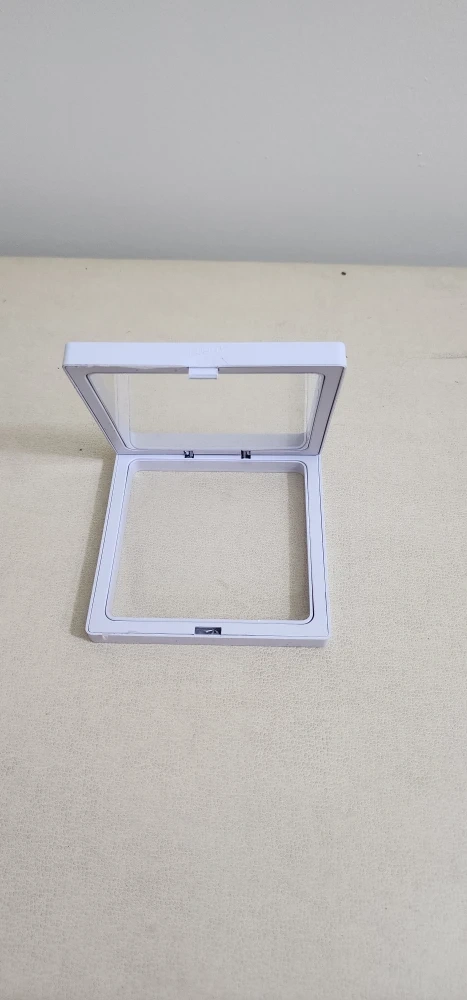 This is a white floating display case. It's perfect for displaying small items and collectibles. It is in great condition and ready for a new home