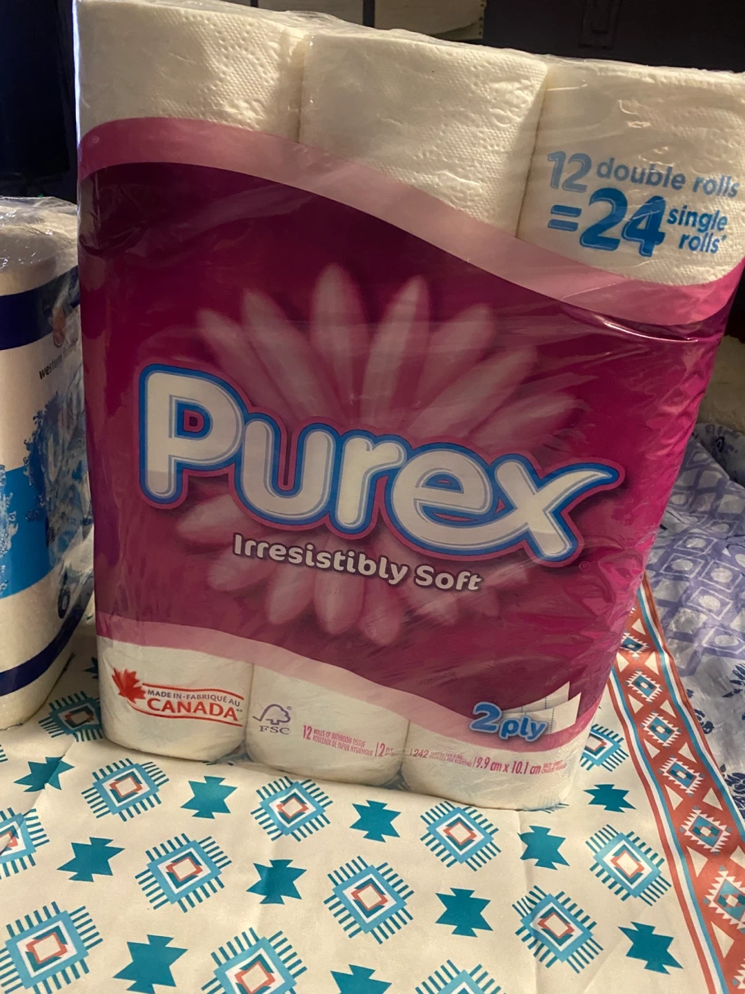 Selling a pack of Western Family Ultra paper towels with 6 rolls and a pack of Purex irresistibly soft toilet paper with 12 double rolls (24 single rolls)