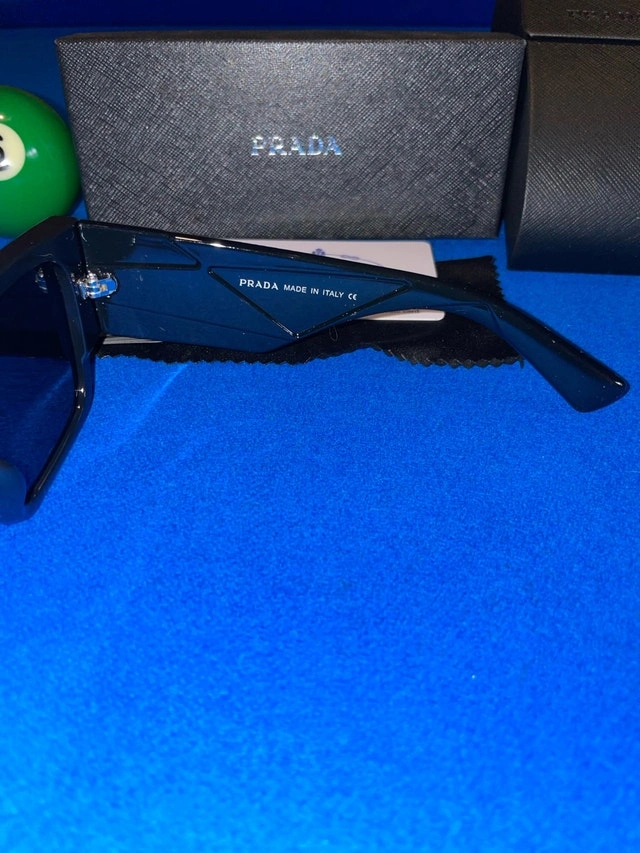 Sunglasses with an acetate frame featuring sinuous and slightly beveled rims expressing bold femininity. The thin temples are emphasized by a refined three-dimensional element that iconographically depicts the Prada triangle logo. !! BOX NOT INCLUDED !!! SUNGLASSES and PURCHASE RECEIT ONLY !!! Condition: Used - Like new. Cash accepted. Feel free to message if you have any questions!