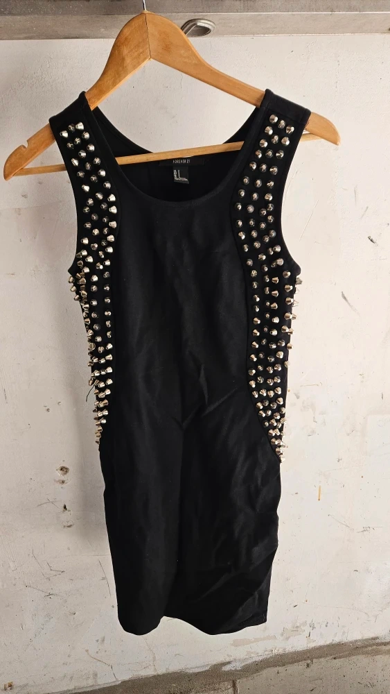 Selling a Forever 21 black dress with studded detailing! It's a size small and in great condition. Perfect for a night out or adding a bit of edge to your wardrobe