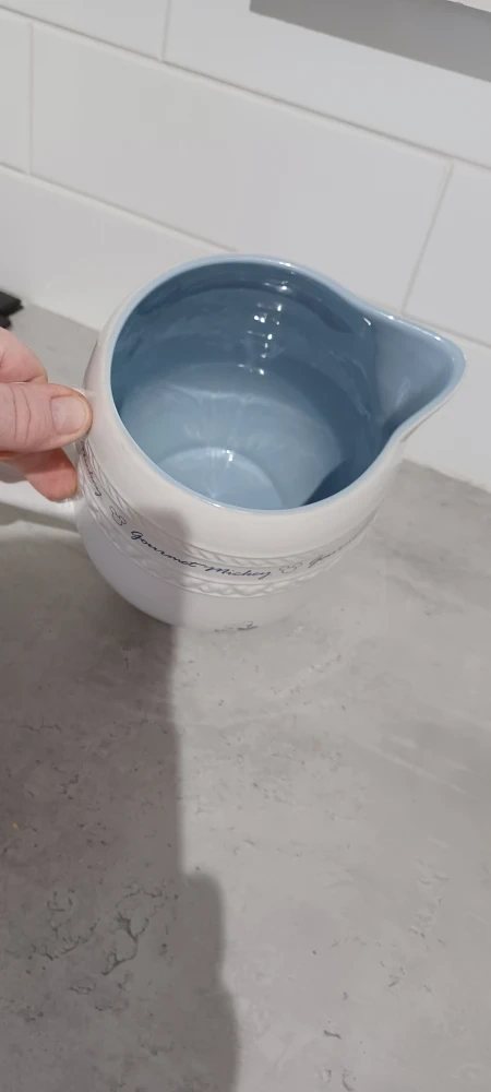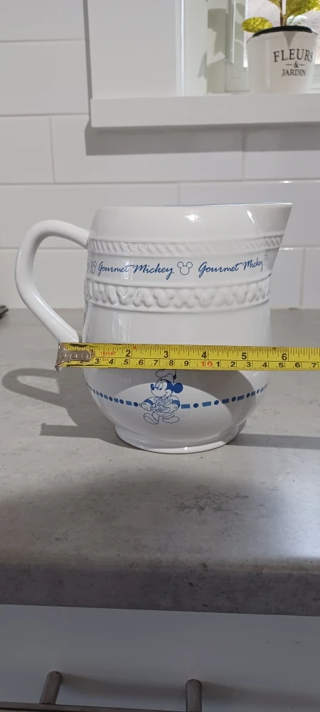 Selling a cute Vintage Disneyland, Disney World gourmet Mickey Mouse, white ceramic pitcher! Made in the 90's, it’s white ceramic with blue accents features chef Mickey Mouse design. It measures approximately 7 inches (18cm) tall and 6 inches (13cm) wide. Holds 9 cups or approximately 2.1 litres. Very nice condition and perfect for adding a touch of Disney charm to your kitchen!