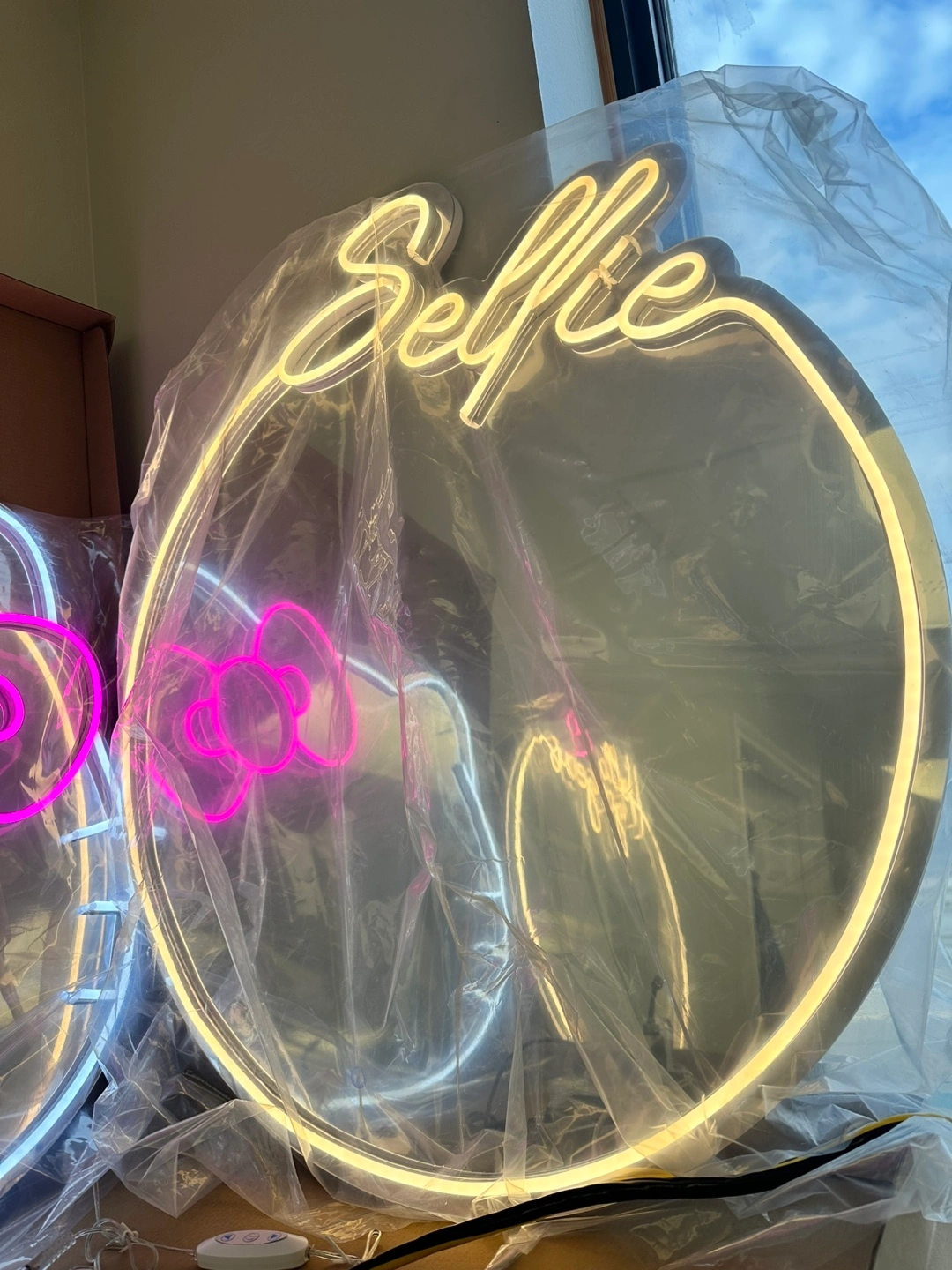 I have a brand new Hello Gorgeous neon mirror for sale! It's still in its original packaging and ready to light up your space. It's a fun and stylish way to add some personality to your room