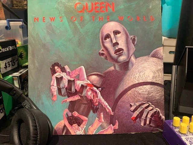 I am selling a used QUEEN 'News of the World' vinyl record, featuring iconic songs. The record is in very good condition, with some signs of wear consistent with its age, but it plays great! This is a must-have for any classic rock fan. I've priced it competitively. If the ad is up, then yes, it is available and just waiting to find a new home and spin some sweet tunes!