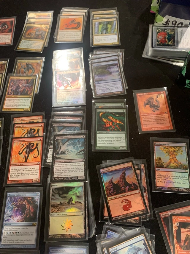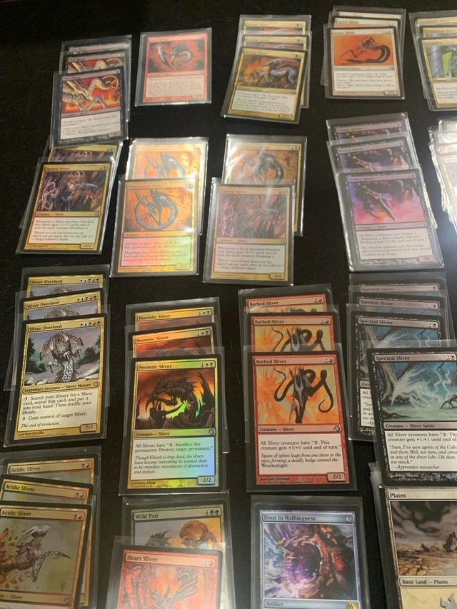 Dive into a treasure trove of Magic: The Gathering history with this massive collection of Super Slivers! These cards have seen some action, making them used but still ready to dominate your next game night. Perfect for collectors and players alike. Ask yourself how did he get 4 of each SLIVER? I bought FOUR SETS! And I’m not kitten. ⬛ The value comes from eBay closed sales and Karrot. If the ad is still up, these Sliver cards are available!