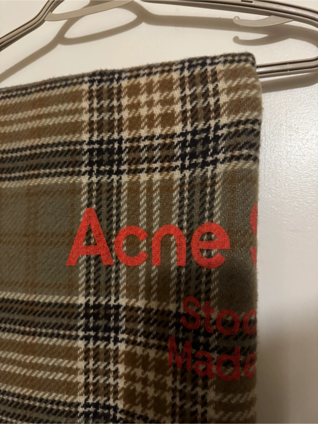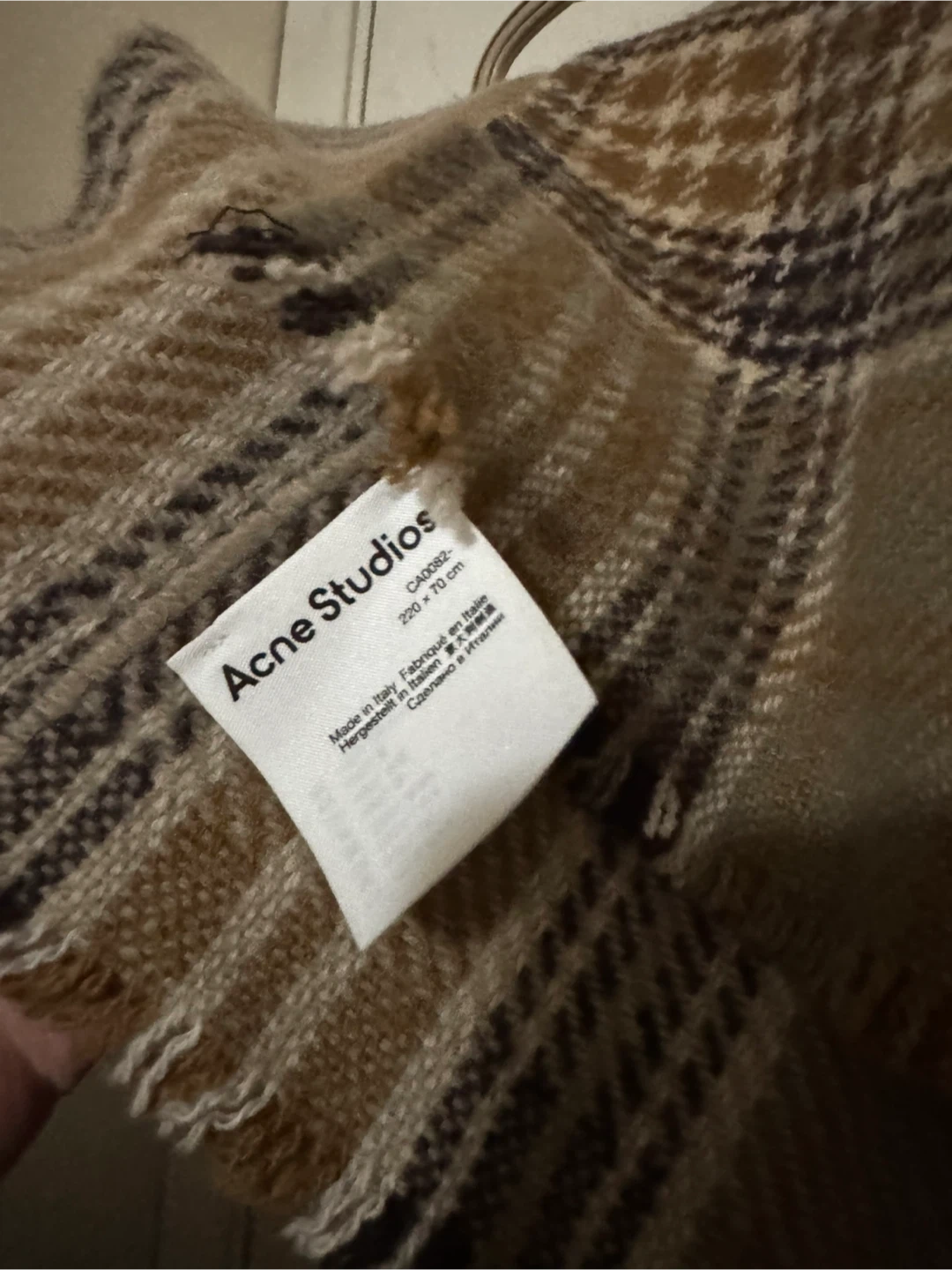 Cozy Acne Studios scarf in a lovely brown plaid pattern! It's made of 100% wool and measures 220 x 70 cm.
