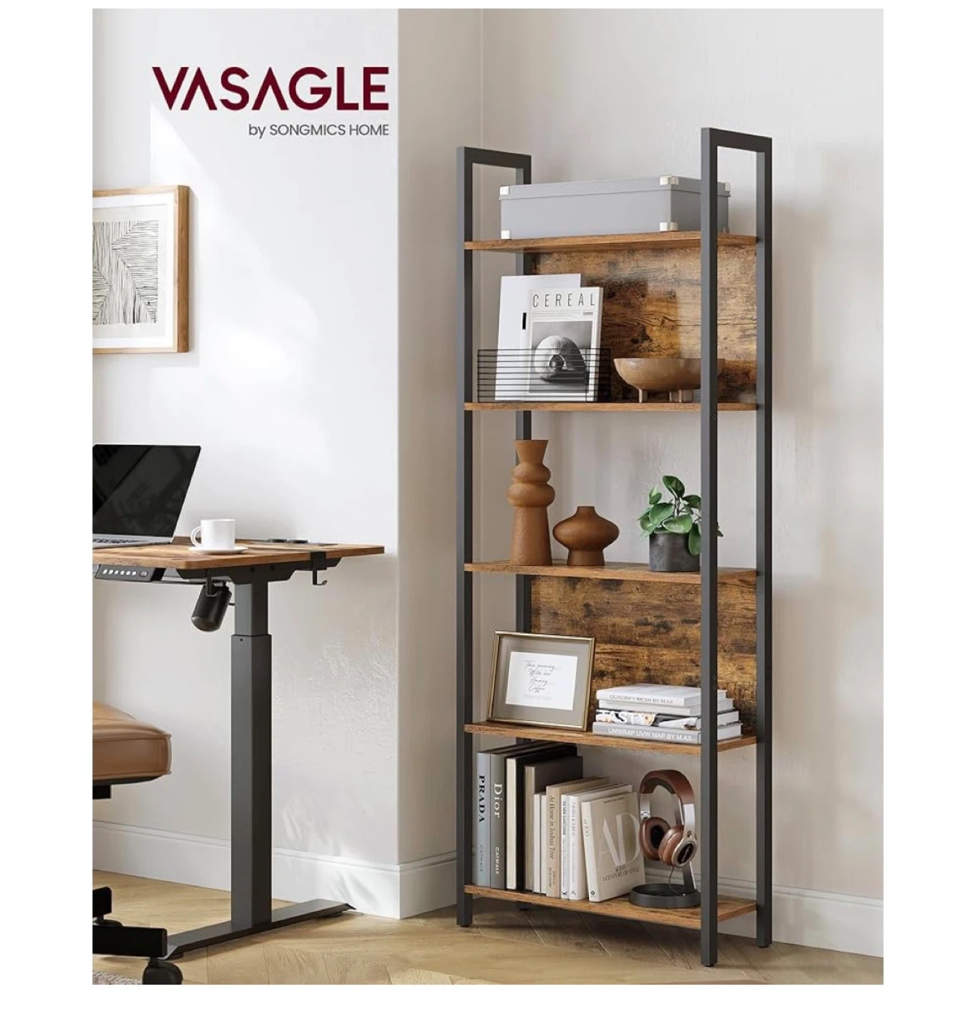 VASAGLE 5-Tier Bookshelf - Rustic Brown