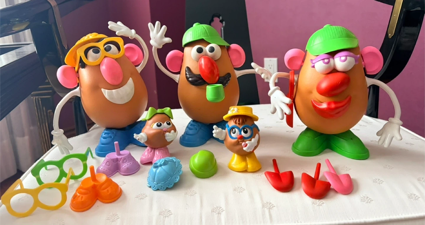 It's a Mr. Potato Head family set including multiple potatoes and a variety of fun accessories. This toy encourages creative play and mix-and-match fun. It's great for kids who love imaginative building and storytelling!