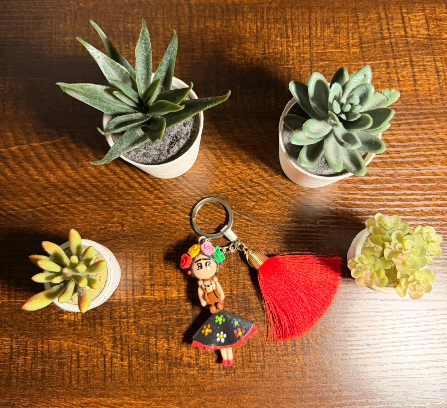 Cute Frida Kahlo keychain with a red tassel! It's in great condition and ready to accessorize your keys or bag