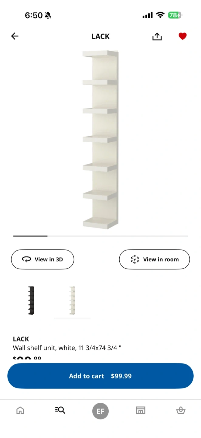 Buy & SellIKEA LACK Wall Shelf Unit WhiteIKEA LACK Wall Shelf Unit White$45This is an IKEA LACK wall shelf unit in white. It's 11 3/4 inches wide and 74 3/4 inches tall. Great for small spacesConditionLike newWHERE TO MEETCorner of 2nd and 21stView MapSELLERverifiedElizaGramercy Park873 reviews0 chats·0 favorites·14 viewsSEND CHAT TO SELLERHi Eliza! I’m interested in your listing.Hi Eliza! I’m interested in your listing.Get the Karrot app to chatSign In to chat