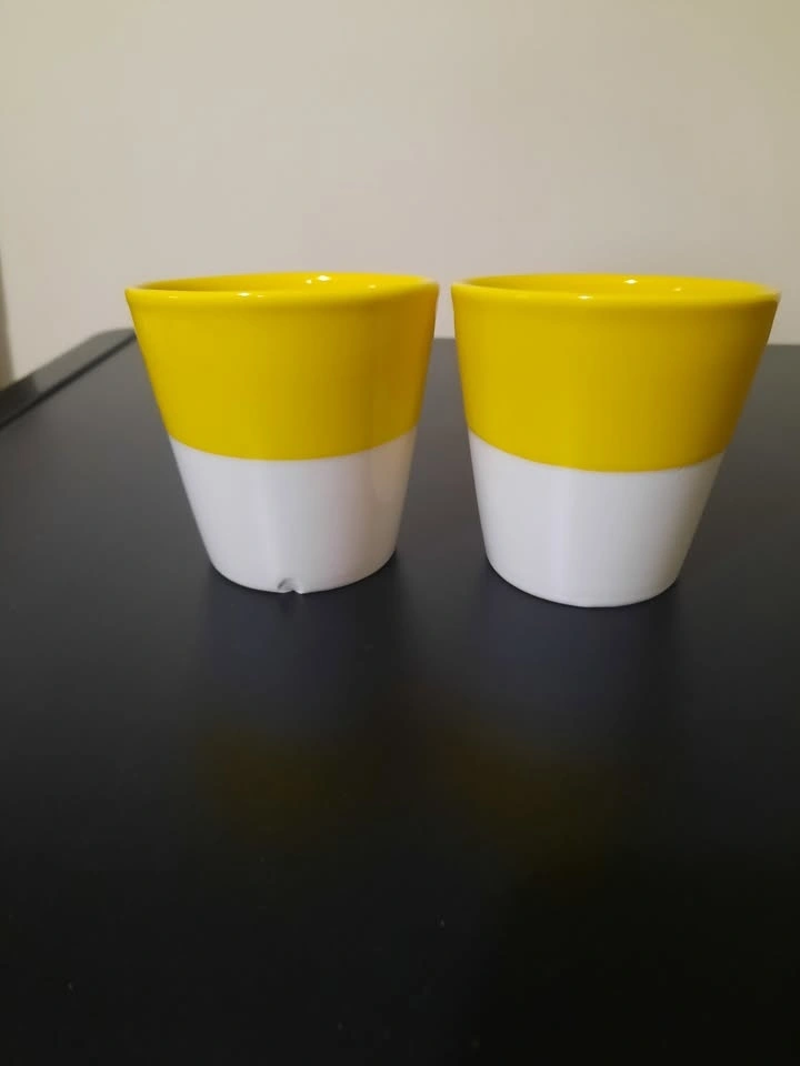 Selling a pair of Starbucks TAZO coffee/tea mugs, yellow and white, from 2012.