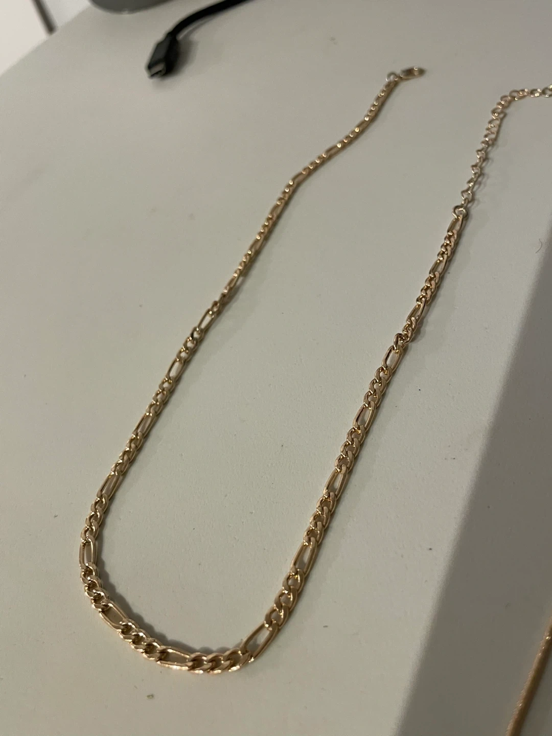 Selling a gold Figaro chain necklace. It's in great condition and ready to add a touch of style to your look!