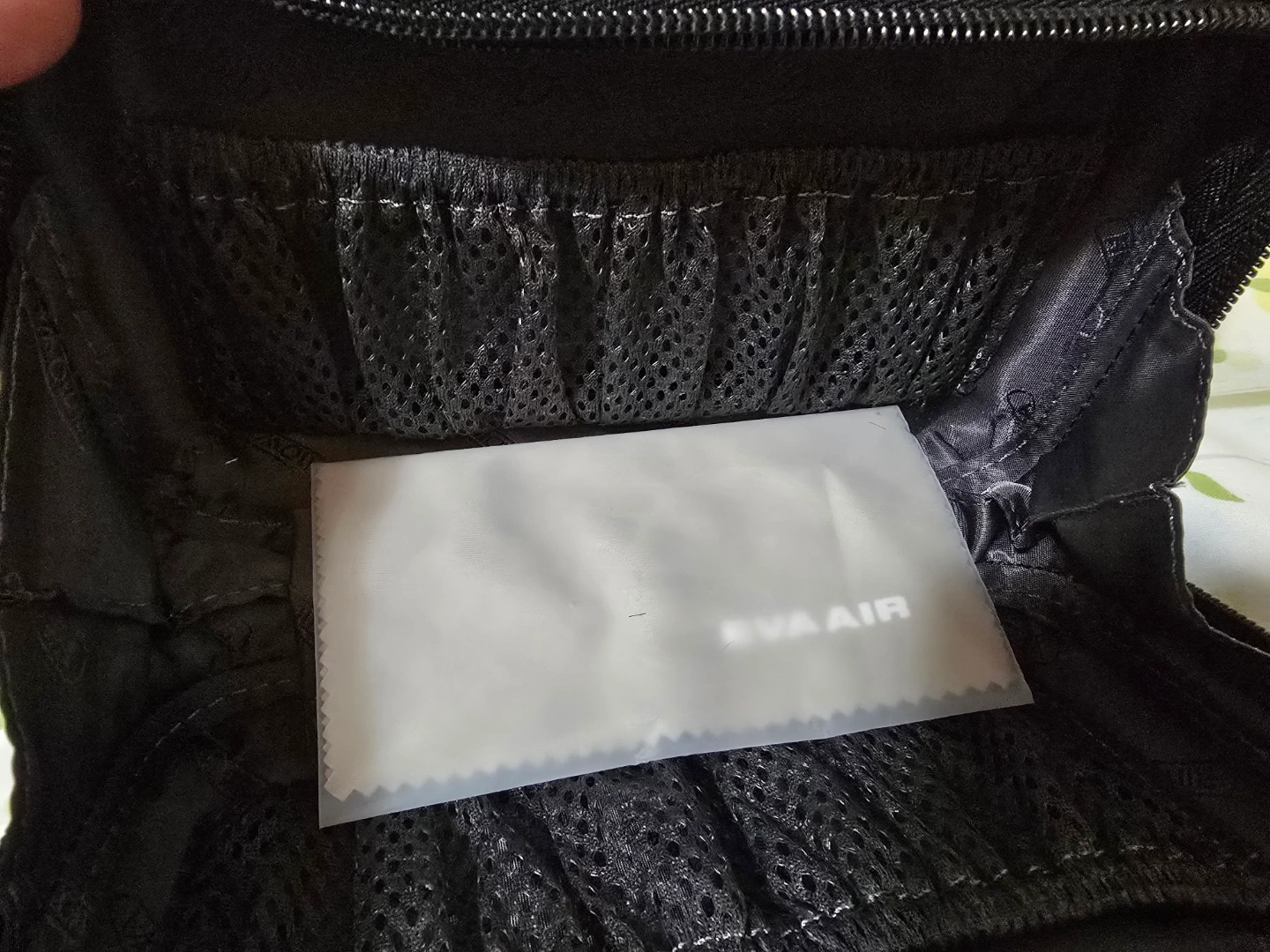 Hard-shell case. Mint green exterior. Black interior with mesh pockets. Includes cleaning cloth. Compact and portable.